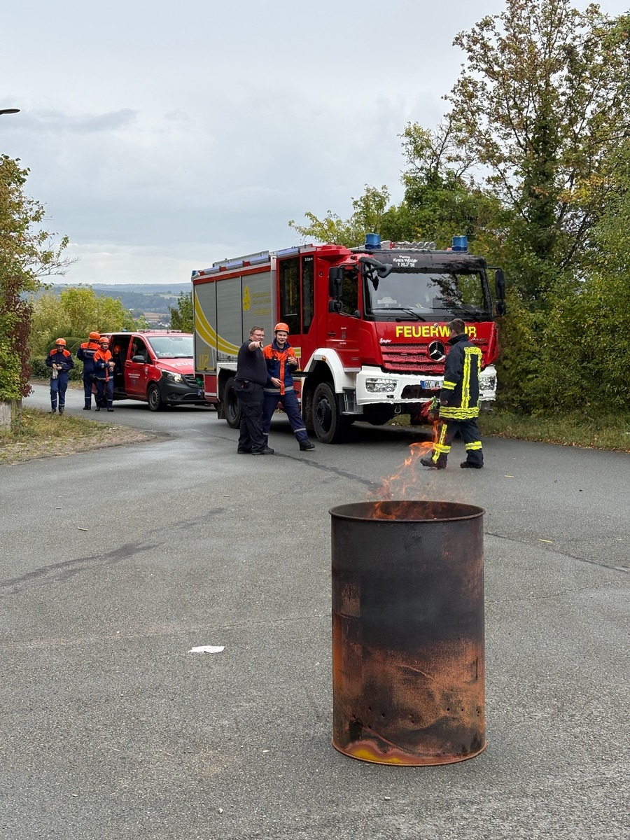 Am nächsten Morgen startete der Tag früh: Bereits um 6 Uhr rückten die Nachwuchs-Einsatzkräfte zu einem simulierten Brand an einer Biogasanlage aus. Nach erfolgreicher Brandbekämpfung und einem Frühstück um 8 Uhr standen weitere Ausbildungseinheiten auf dem Programm. Dazu gehörten Fahrzeug- und Gerätekunde, Erste Hilfe sowie zwei kleinere Einsatzübungen mit Feuertonnen und Verletztenversorgung.