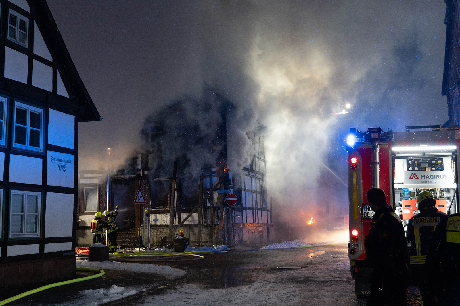 Holzminden (zir). Ein gemeldetes Feuer in einer Wohnung in der Johannisstraße hat am frühen Donnerstagmorgen einen Großeinsatz der Feuerwehr ausgelöst. Um 4:43 Uhr wurden die Einsatzkräfte zu einem Brand in einem Gebäude in der Johannisstraße alarmiert. Bereits beim Eintreffen stand das Untergeschoss in Vollbrand, die Flammen hatten zu diesem Zeitpunkt bereits auf das erste Obergeschoss übergegriffen.
