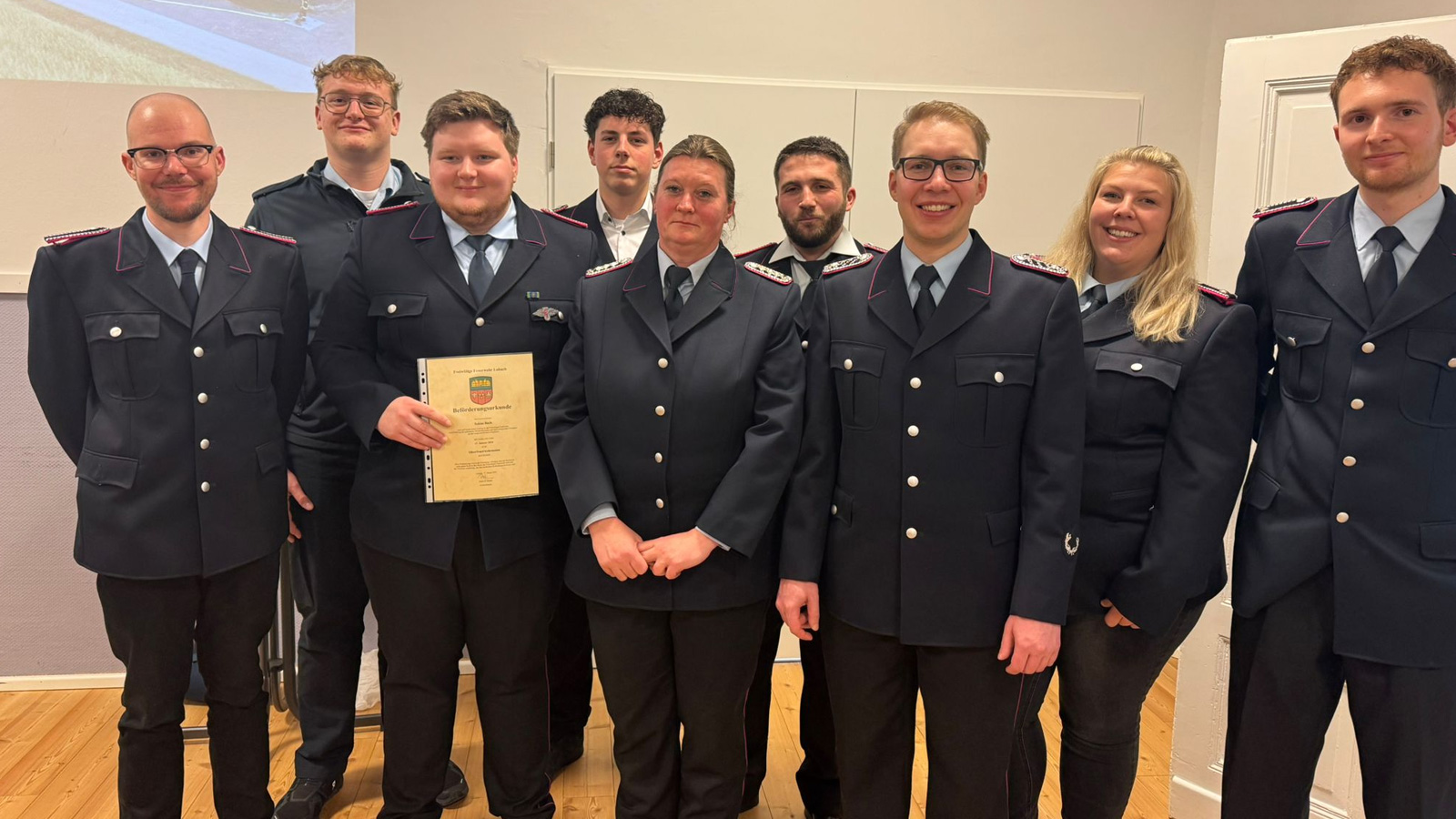 Zudem standen zahlreiche Ernennungen, Beförderungen und Ehrungen auf der Tagesordnung. Der Vorsitzende ernannte Patrick Ewers, André Schütte, Christian Schröter, Fynn Loges und Finn Herrmann zu Feuerwehrmännern. Tobias Bock wurde zum Oberfeuerwehrmann, Jendrick Alburg zum Hauptfeuerwehrmann und Franziska Heine zur Hauptfeuerwehrfrau befördert. Uwe Bagus erhielt die Beförderung zum Ersten Hauptfeuerwehrmann. Durch den stellvertretenden Gemeindebrandmeister Uwe Albrecht wurde Patrick Heine zum Hauptlöschmeister befördert.