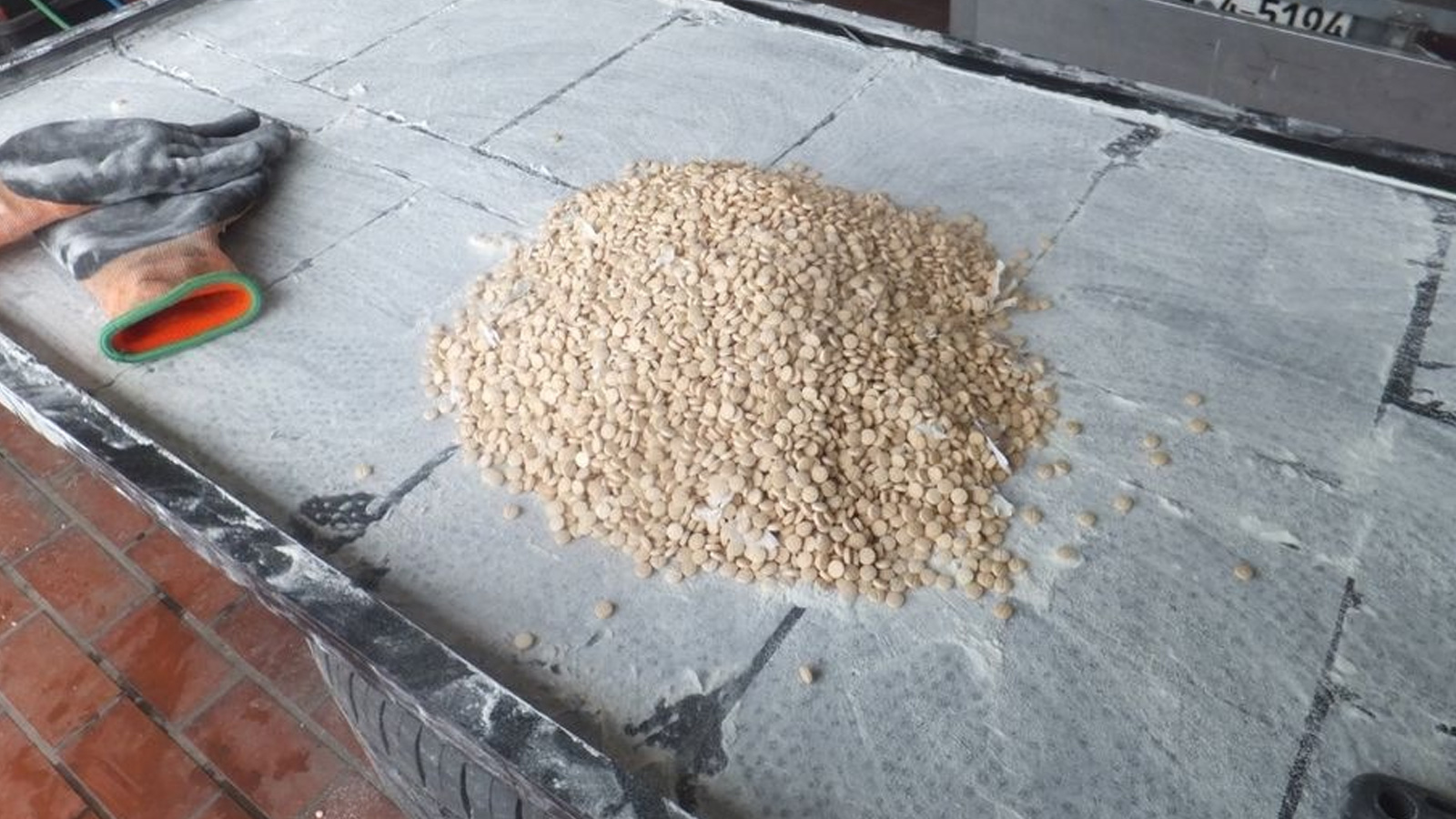 Insgesamt stellten die Einsatzkräfte 14 Solarpaneele sicher. Auf zwölf Paneelen waren die Amphetamine bereits vollständig eingegossen, zwei weitere Paneele waren mit Pillen bestückt, jedoch noch nicht versiegelt. Zusätzlich fanden die Beamtinnen und Beamten Folienschweißbeutel mit weiteren Captagon-Tabletten mit einem Gewicht von rund 30 Kilogramm. Insgesamt wurden etwa 65 Kilogramm der chemisch hergestellten Drogen sichergestellt. Der geschätzte Straßenverkaufswert liegt im siebenstelligen Bereich.