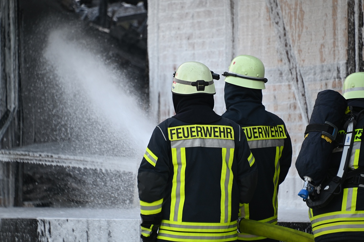 Das betroffene Lagergebäude brannte vollständig aus. Ein Innenangriff war aus Sicherheitsgründen nicht mehr möglich, sodass die Feuerwehr von außen löschte und auch Schaum einsetzte.