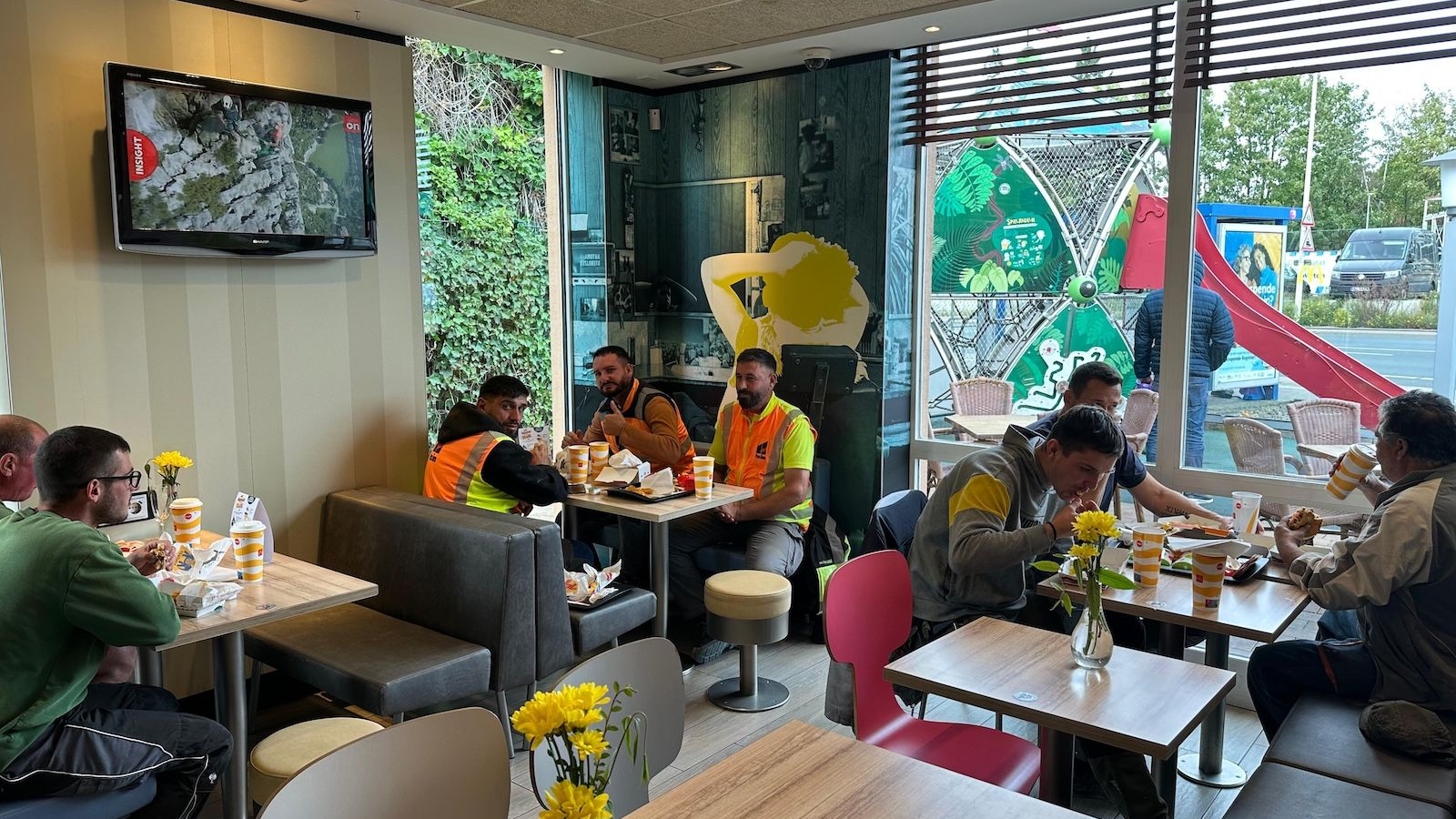 Für den Innenausbau verantwortlich ist die Firma Heim Infrastrukturbau. Bauleiter Peter Paxian bestätigte, dass der Zeitplan eingehalten werde: „Der Boden ist abgedichtet, Estrich kommt nächste Woche, die Lüftungskanäle sind in Arbeit. Parallel laufen die Fassadenarbeiten. Wir werden das Restaurant am 18. November eröffnen.“ Trotz Ruhestand zieht es den erfahrenen Bauleiter immer wieder auf McDonald’s-Baustellen: „Ich mache das seit 35 Jahren und es macht mir nach wie vor Spaß.“