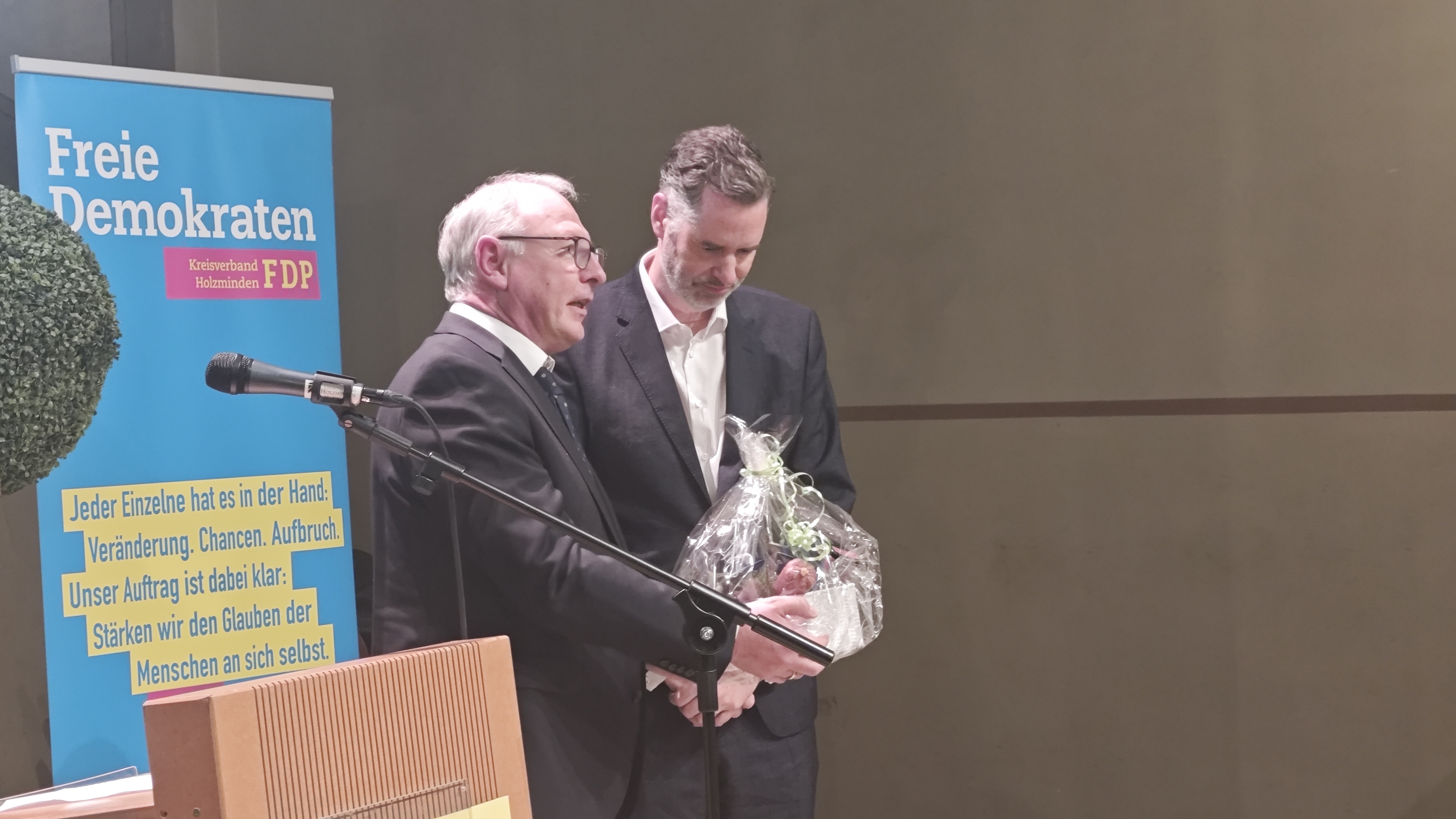 Gegen Ende der Veranstaltung ergriff auch Beverns Bürgermeister Burkhard Dörrier das Wort. Sichtlich bewegt zeigte er sich von den Ausführungen Christian Dürrs und sprach von einem „Kloß im Hals“ nach dessen Rede. Dörrier räumte ein, dass politisch nicht immer die richtigen Entscheidungen getroffen worden seien, betonte jedoch, dass aus Fehlern gelernt werden müsse. Wichtig sei es, trotz aller Herausforderungen optimistisch in die Zukunft zu blicken. Bund und Land würden davon profitieren, wenn die FDP wieder in die Parlamente einziehe. Mit Blick auf die angespannte Finanzlage der Kommunen – insgesamt mehr als 55 Milliarden Euro Schulden – machte er deutlich, wie schwer es sei, den Bürgerinnen und Bürgern Perspektiven zu geben, wenn Zusagen finanziell kaum einzuhalten seien. Auch in der Bildungspolitik äußerte Dörrier deutliche Kritik, etwa an der Abschaffung des schriftlichen Dividierens in Niedersachsen. Abschließend erinnerte er an einen zentralen Leitsatz der FDP: „Vorfahrt für die Vernunft“, und verband damit die Hoffnung, dass dieser Anspruch auch künftig handlungsleitend bleibe.