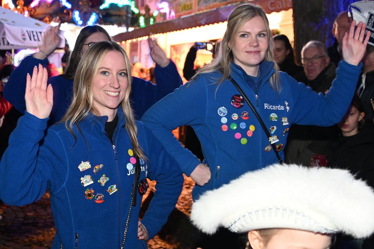 Nach dem Rathaussturm war das närrische Treiben noch lange nicht vorbei. Am Nachmittag startete in Beverungen das bunte Programm auf dem Kellerplatz – begleitet von Musik, Tanzdarbietungen der Garden und vielen Aktionen für Groß und Klein. Höhepunkt des Tages war die Proklamation der neuen Tollitäten um 17.11 Uhr: Prinz Florian, „der balearisch Regierende“ (Kastens), und Prinzessin Carena, „die ewig Marschierende“ (Zarnitz), übernehmen das närrische Zepter der Jubiläumssession. An ihrer Seite führen „Till, der fröhlich Kreative“ (Marx) und Prinzessin „Johanna, die glitzernd Aktive“ (Kleinschmidt) die jungen Karnevalistinnen und Karnevalisten an. Mit großem Applaus wurden zugleich die scheidenden Tollitäten verabschiedet, die sich mit einer Ehrenordenverleihung aus ihren Ämtern verabschiedeten. Auch das WDR-Fernsehen war vor Ort und berichtete aus der Karnevalshochburg im Dreiländereck.