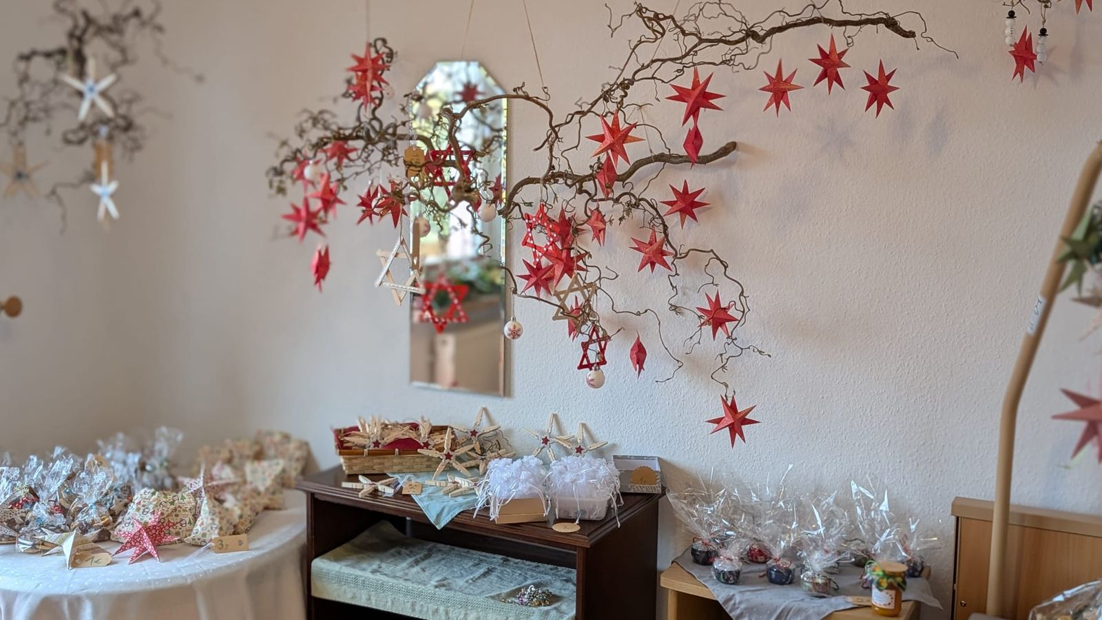Die Besucherinnen und Besucher genossen den Nachmittag in gemütlicher Atmosphäre. Bei warmen Getränken, frisch gebackenem Kuchen und herzhaften Speisen bot sich reichlich Gelegenheit für Gespräche und Begegnungen. Die Bewohnerinnen und Bewohner der Senioren-WG hatten im Vorfeld mit viel Freude an der Herstellung der weihnachtlichen Dekoration mitgewirkt.