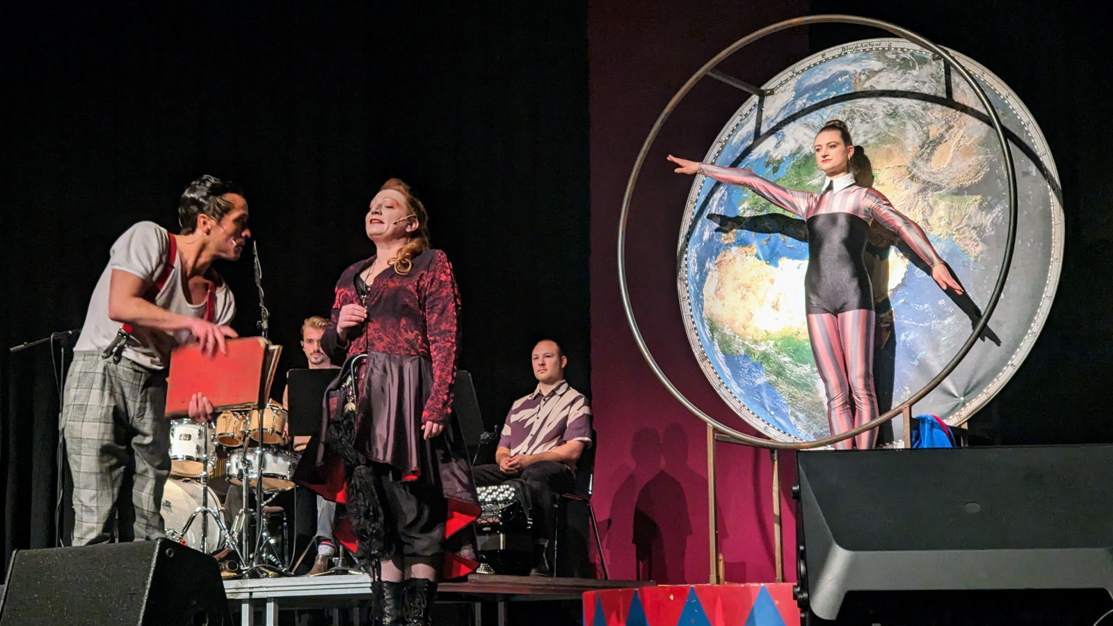 Komponist Libor Síma schuf eine eigene Klangwelt für das Stück. Gemeinsam mit drei Musiker*innen an Kontrabass, Akkordeon und Gitarre begleitete er den Abend live mit jazzigen und sphärischen Tönen. Seit zwei Jahrzehnten arbeiten Mühleis und Síma zusammen – auch diesmal verschmolzen Wort und Musik zu einem harmonischen Gesamtbild.