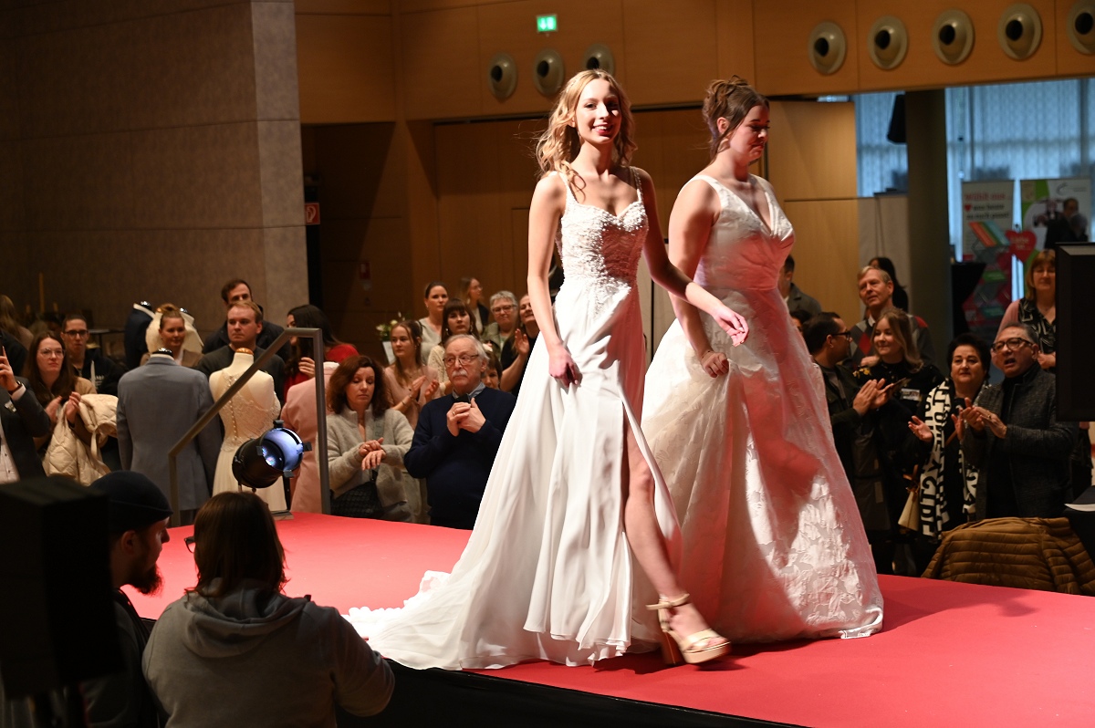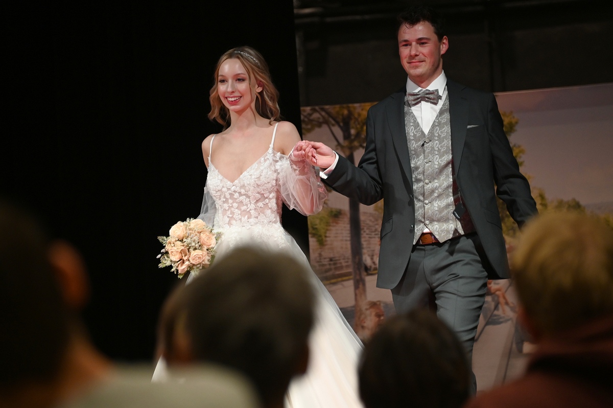 Höxter (TKu). Von der ersten Idee bis zum letzten Detail: Wer sich mitten in den Hochzeitsvorbereitungen befindet und Inspirationen suchte, insbesondere was die neuesten Trends betrifft, der war am Sonntag in der Residenz-Stadthalle in Höxter genau richtig. Bei der 30. Höxteraner Hochzeitsmesse, ausgerichtet von der Boutique Tinas Moden, drehte sich wieder einmal alles um den wohl schönsten Tag im Leben eines Paares. Die Messe bot eine gelungene Mischung aus Information, Inspiration und persönlicher Beratung. Drei Modenschauen, bei denen die aktuellen Hochzeitskollektionen 2026 vorgestellt wurden, waren die Höhepunkte der Messe, die etwa 500 Besucherinnen und Besucher angezogen hat. Zeitlose und wandelbare Designs seien aktuell sehr gefragt. Bettina Hörnlein von Tinas Moden erläuterte, dass aktuell hauptsächlich abnehmbare Röcke und Schleppen im Trend lägen, um den Übergang von Trauung zu Feier flexibel zu gestalten. Ergänzt würden diese durch integrierte Taschen, Beinschlitze in weich fließenden Chiffonröcken, schlichte Satinröcke oder weit geschnittene Kleider für den „Prinzessinnenmoment“. Ein hoher Tragekomfort und der Wohlfühlfaktor spielten bei der Beratung stets eine zentrale Rolle. Auch bei der Mode für den Bräutigam zeigten sich neue Akzente. Moderne Farbtöne setzten frische Impulse, während klassische Modelle, wie in Blau, weiterhin gefragt blieben.