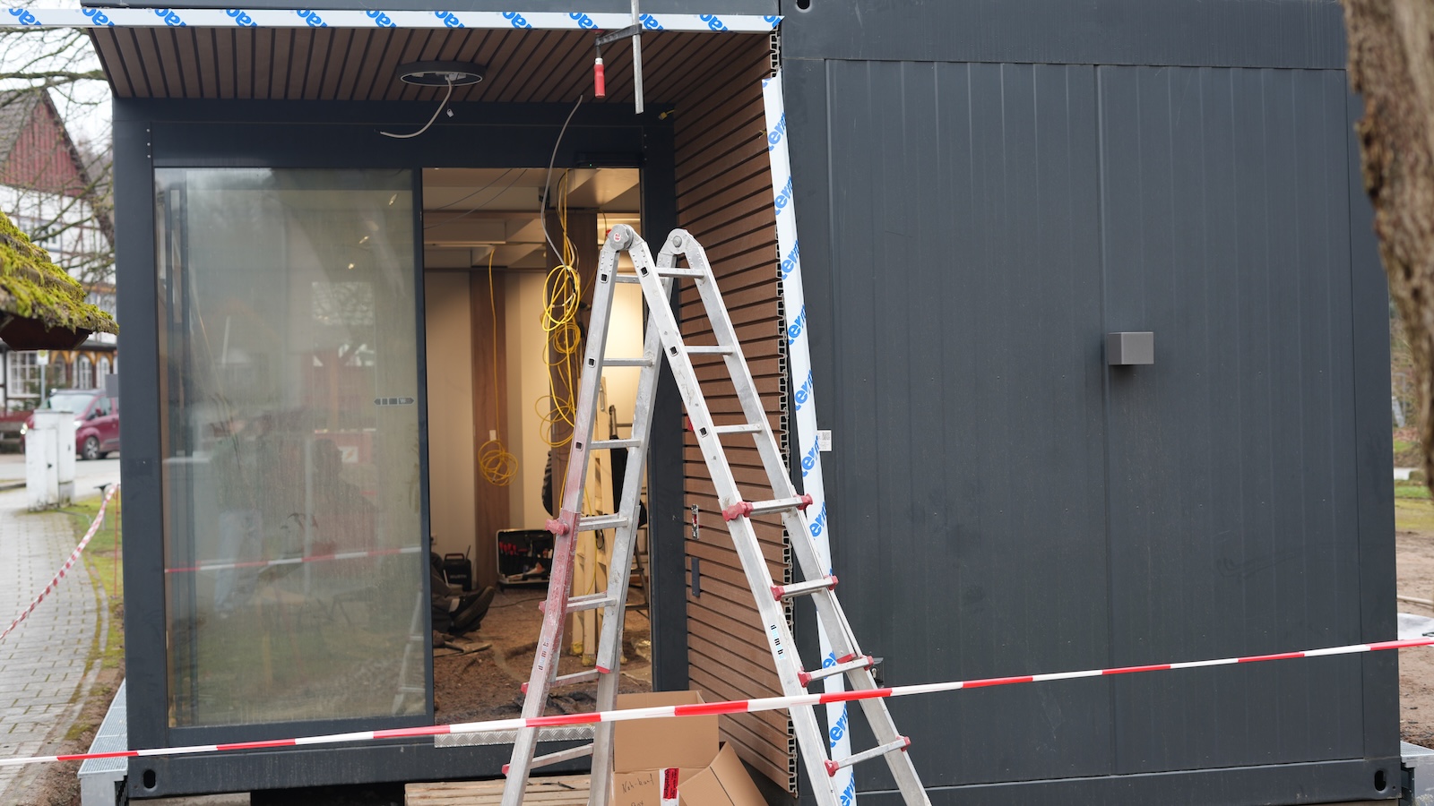 Golmbach (lbr). „Am Montag kam der Container und jetzt wird aufgebaut“, berichtet Golmbachs Bürgermeister Dietmar Nickel. Derzeit entsteht in Golmbach ein neues Nahversorgungsangebot: eine sogenannte Nahkauf-Box, die rund um die Uhr geöffnet sein soll. Die Bauarbeiten sollen bis Ende März abgeschlossen sein. Betrieben wird der vollautomatisierte Mini-Supermarkt von der Familie Altergott, die bereits die Rewe-Märkte in Bevern und Holzminden führt.