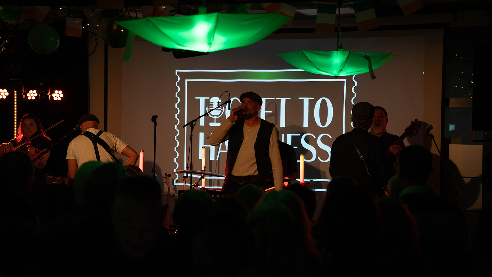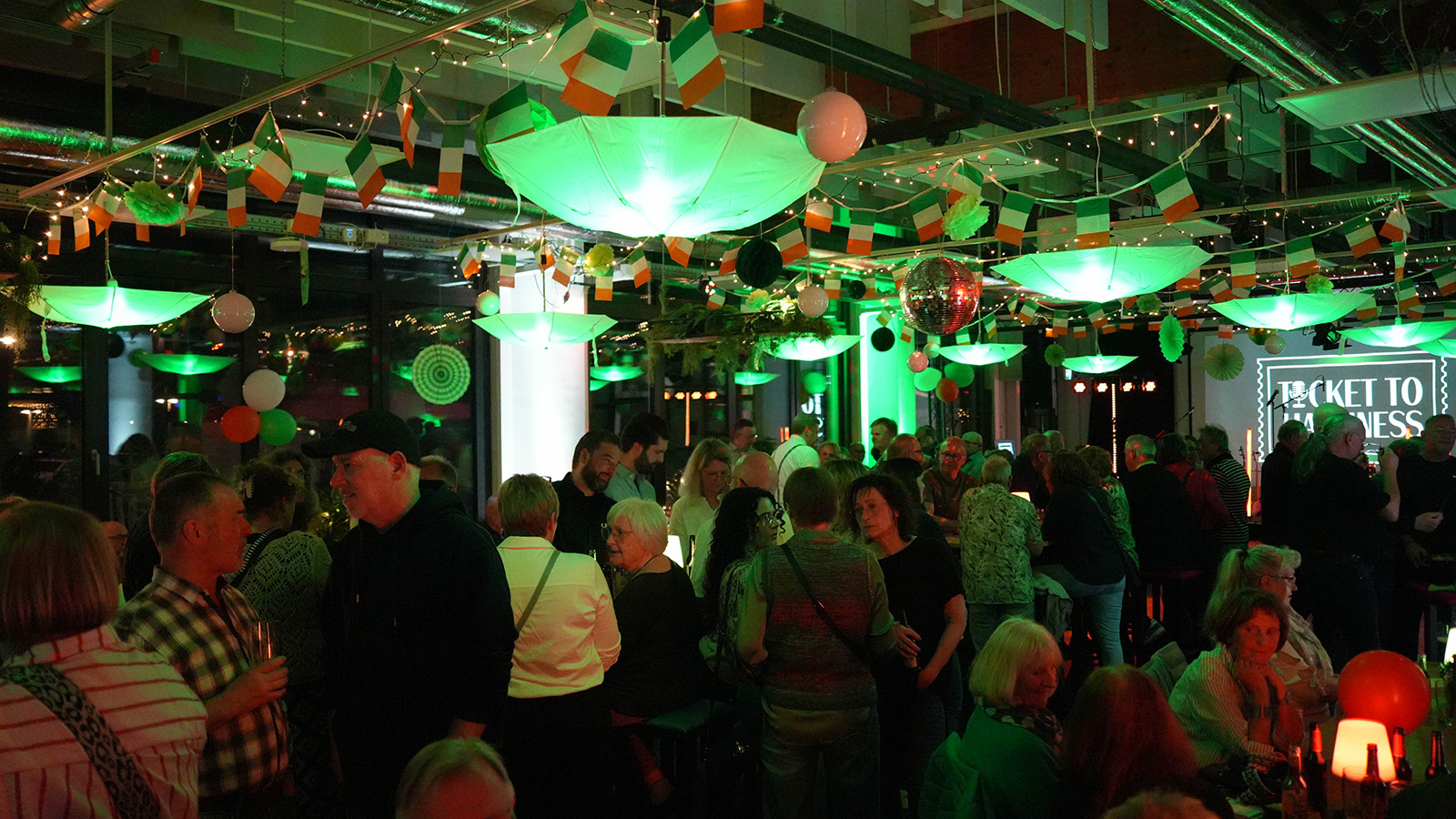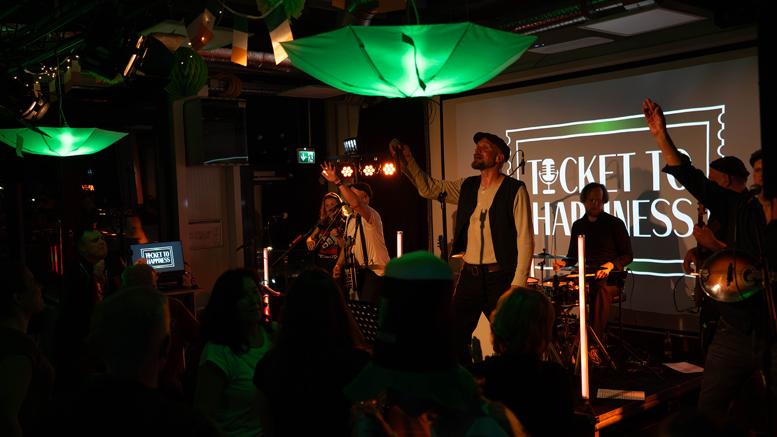 Im Mittelpunkt des Abends stand die Live-Band „Ticket to Happiness“, die mit einer Mischung aus irischen Klassikern und bekannten Pub-Songs für eine durchgehend lebhafte Stimmung sorgte. Die musikalische Darbietung entwickelte sich schnell zum verbindenden Element des Abends: Zahlreiche Gäste sangen mit, hakten sich unter und tanzten gemeinsam vor der Bühne.