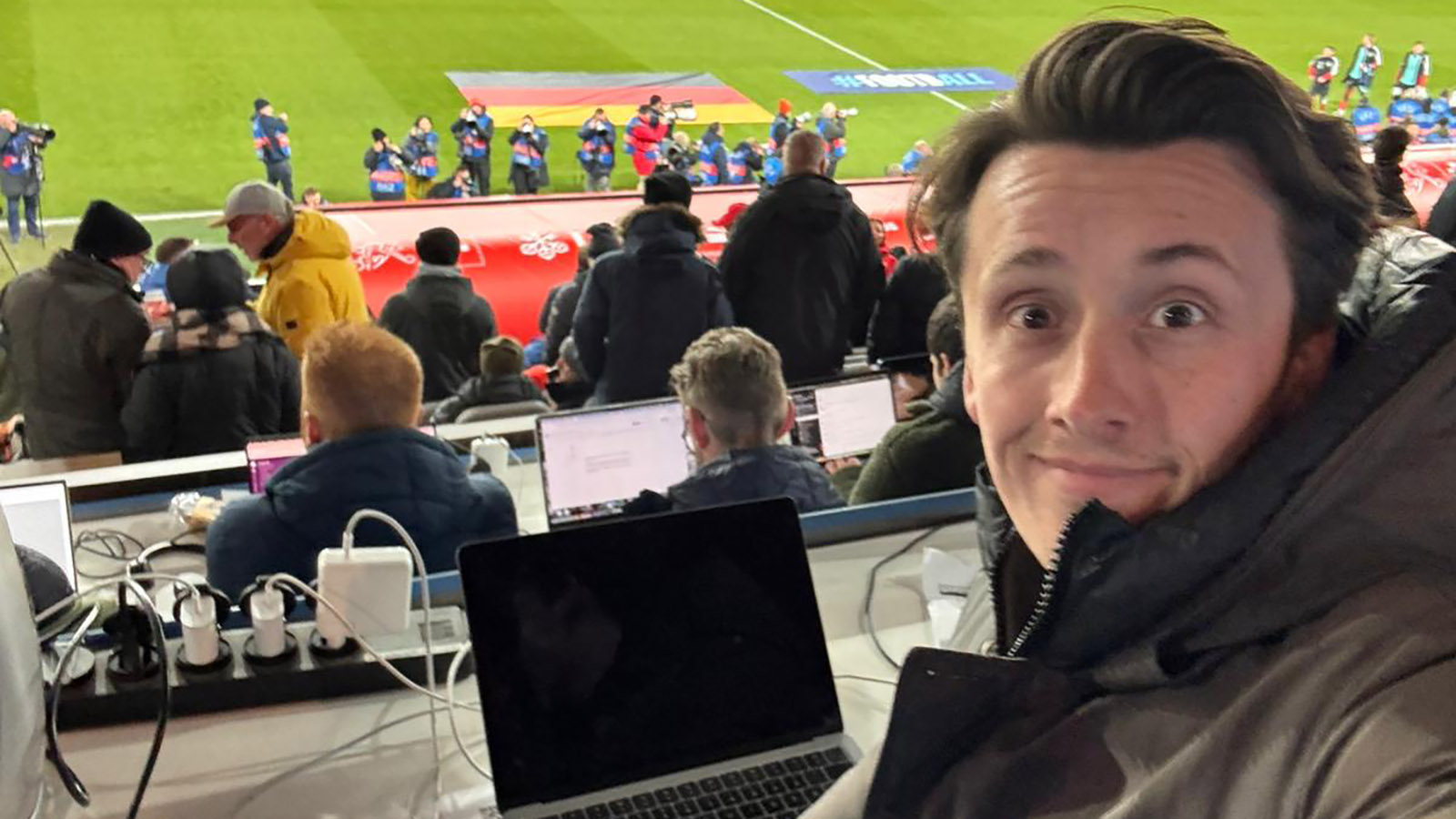 Holzminden (awin). Es ist Spieltag in Basel. Während sich am Abend Deutschland und die Schweiz gegenüberstehen, sitzt Paul Grotenburg noch im Hotel und schreibt die letzten Zeilen für die Leser. „Ein paar Artikel muss ich noch schreiben, damit unsere User bis heute Abend so ein bisschen heiß auf das Spiel gemacht werden“, sagt er. Wenige Stunden später wird er auf der Pressetribüne sitzen – mittendrin statt nur dabei. Für den 1996 in Düsseldorf geborenen Journalisten ist genau das heute Alltag. Und doch bleibt es jedes Mal etwas Besonderes.