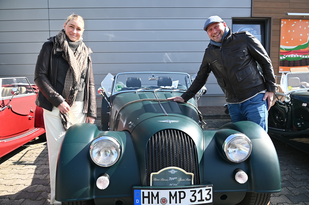 Marco und Silke Lührs aus dem Heidekreis nahmen mit einem Morgan Plus 8 aus dem Jahr 1984 teil. Der Wagen leistet 156 PS. Das Paar fährt bewusst gerne offen mit passender Fliegerhaube. „Mit Verdeck zu fahren, macht nicht viel Spaß“, sagte Marco Lührs. Entscheidend sei das direkte Fahrerlebnis und das entspannte Fahren.