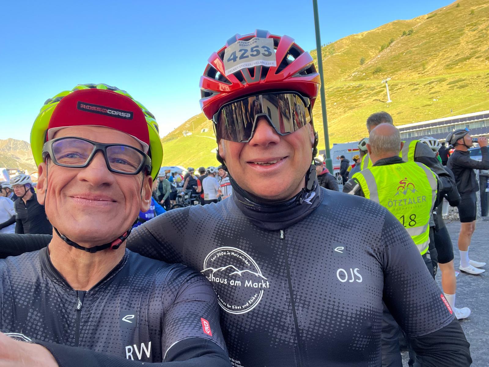 Rund 25.000 Radsportbegeisterte hatten sich für die 4.250 Startplätze beworben. Umso größer war die Freude, als die Zusage im März kam. Für das Holzmindener Team gingen Oliver-Jens Schiller, Rolf Wilhelmus, Stefan Rusche, Frank Meier und Christian Rudatzki an den Start. Pünktlich um 6.30 Uhr fiel in Sölden der Startschuss für 227 Kilometer mit stolzen 5.500 Höhenmetern – verteilt auf vier Alpenpässe: Kühtai, Brenner, Jaufenpass und schließlich das berüchtigte Timmelsjoch.