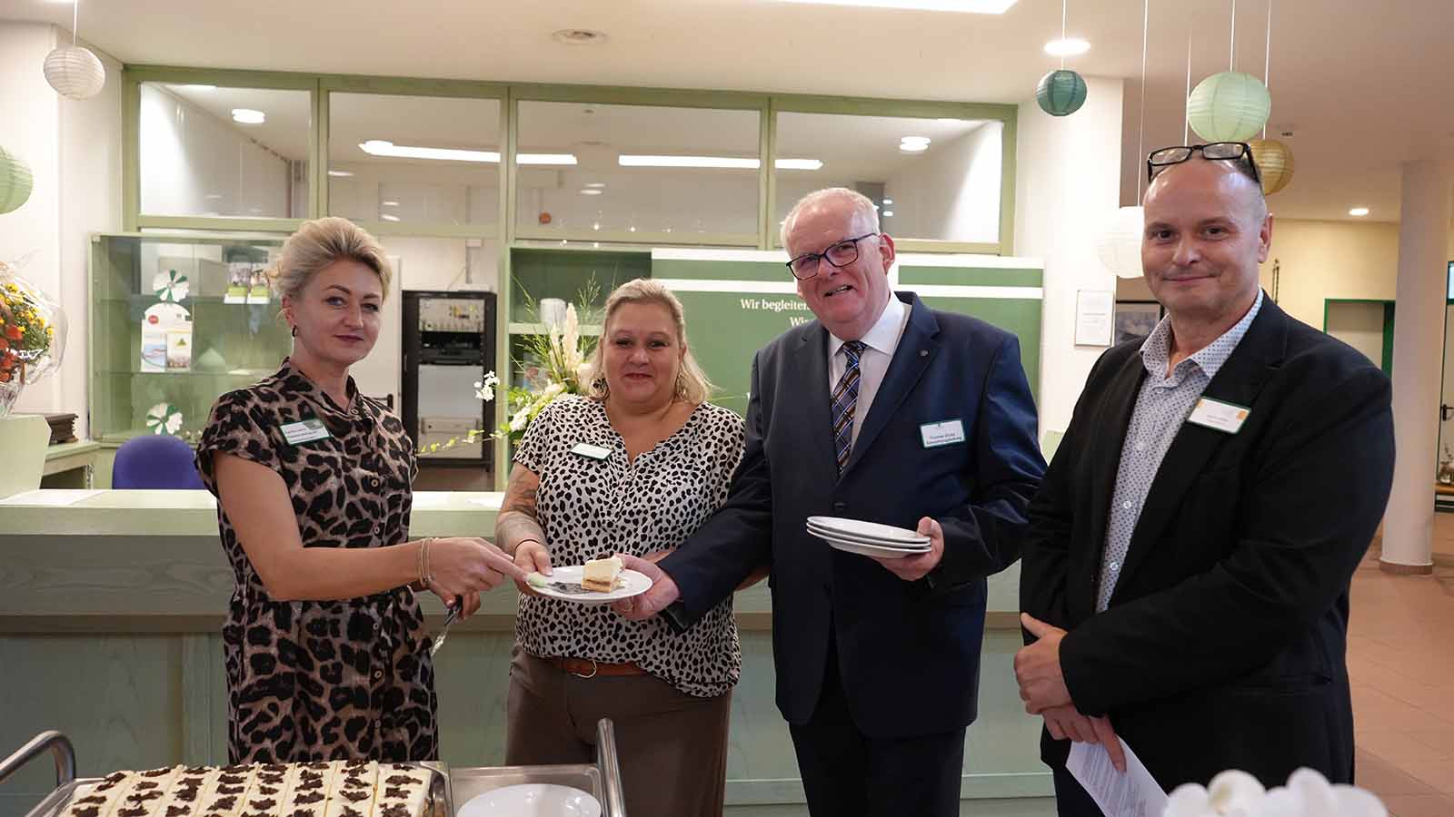 Im Rahmen einer kleinen Feier im Foyer der Seniorenresidenz begrüßte der Einrichtungsleiter die Gäste zunächst mit einem Rückblick: Die Seniorenresidenz eröffnete im September 1995. 36 Millionen D-Mark seien in 14 Monaten aufgewendet worden, um die moderne Residenz zu bauen, wobei Firmen aus der Region maßgeblich beteiligt gewesen seien. „Anfänglich gab es in der ‚Resi‘ noch selbstständige Physio- und Ergotherapeutinnen und -therapeuten“, erzählte der Einrichtungsleiter und führte weiter aus: „Legendär waren damals das Bewegungsbad und die Kneippanlage sowie die großzügige Ausstattung der Zimmer mit Terrasse und Balkon. Der Friseursalon, Räumlichkeiten für die Fußpflege und die Cafeteria wurden auch von den Bürgerinnen und Bürgern genutzt.“ Die „Resi“ habe sich so in Stadtoldendorf und in der Umgebung zu einer festen Größe etabliert.