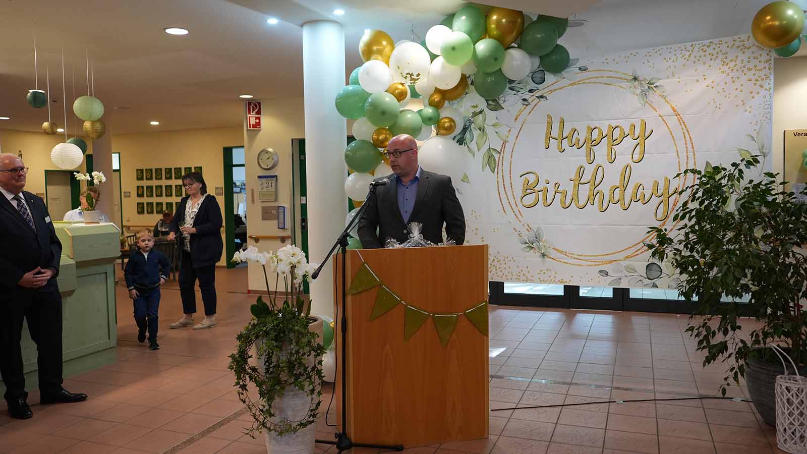 Landtagsabgeordneter Uwe Schünemann (CDU) gratulierte ebenfalls zum Jubiläum. „Auch ich sehe das Ganze als etwas, worauf man stolz sein kann, und empfinde es als eine Erfolgsgeschichte“, so Schünemann. Bewundernswert sei zudem, dass hier stets an Bewohnerinnen und Bewohner, Gäste sowie Familien gedacht werde. „Angehörige werden nie allein gelassen“, bemerkte der Landtagsabgeordnete.