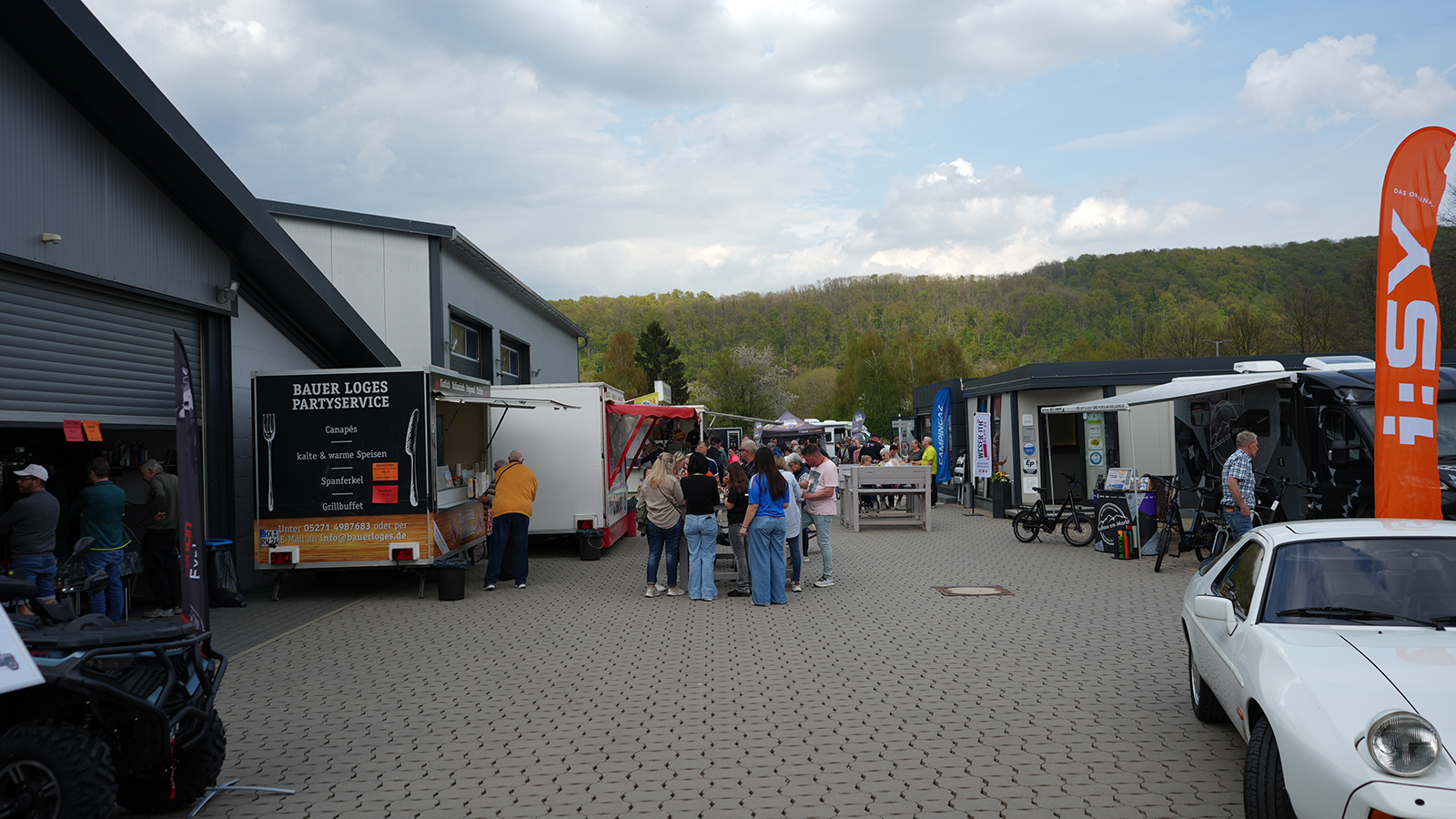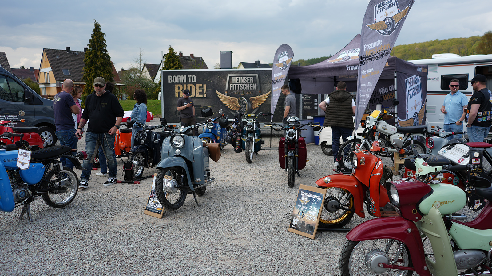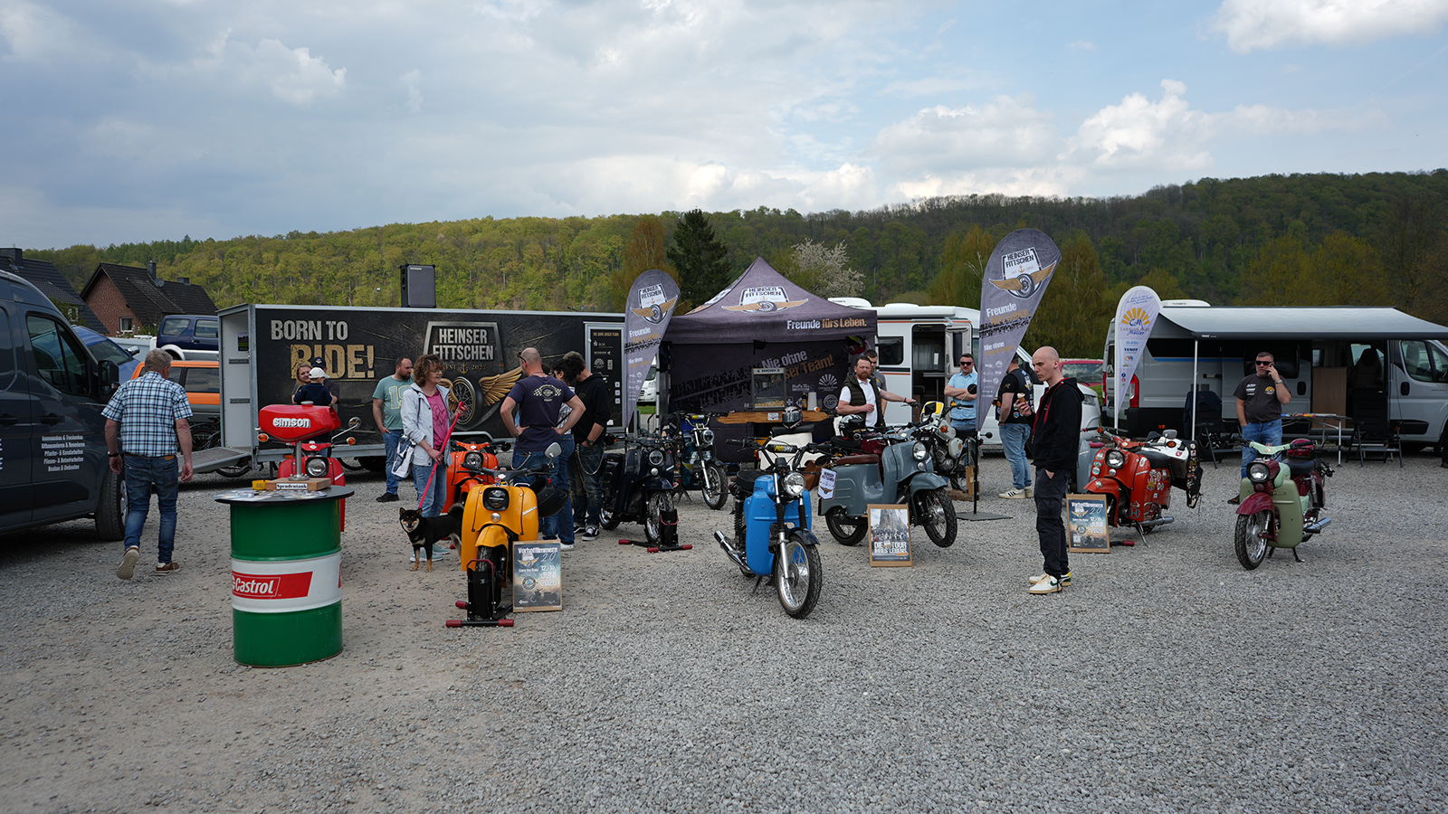 Für zusätzliche Abwechslung sorgten weitere Ausstellungsstücke und Angebote: Dazu zählten eine Quadausstellung, ein Porsche 928 S aus den 70er Jahren sowie ein auffällig folierter Mercedes AMG. Heinser Fittschen war mit einem Großaufgebot an Zweitaktern vor Ort und machte sowohl auf das Vorhofflimmern als auch auf die Barcelona-Reise vor zwei Jahren aufmerksam.