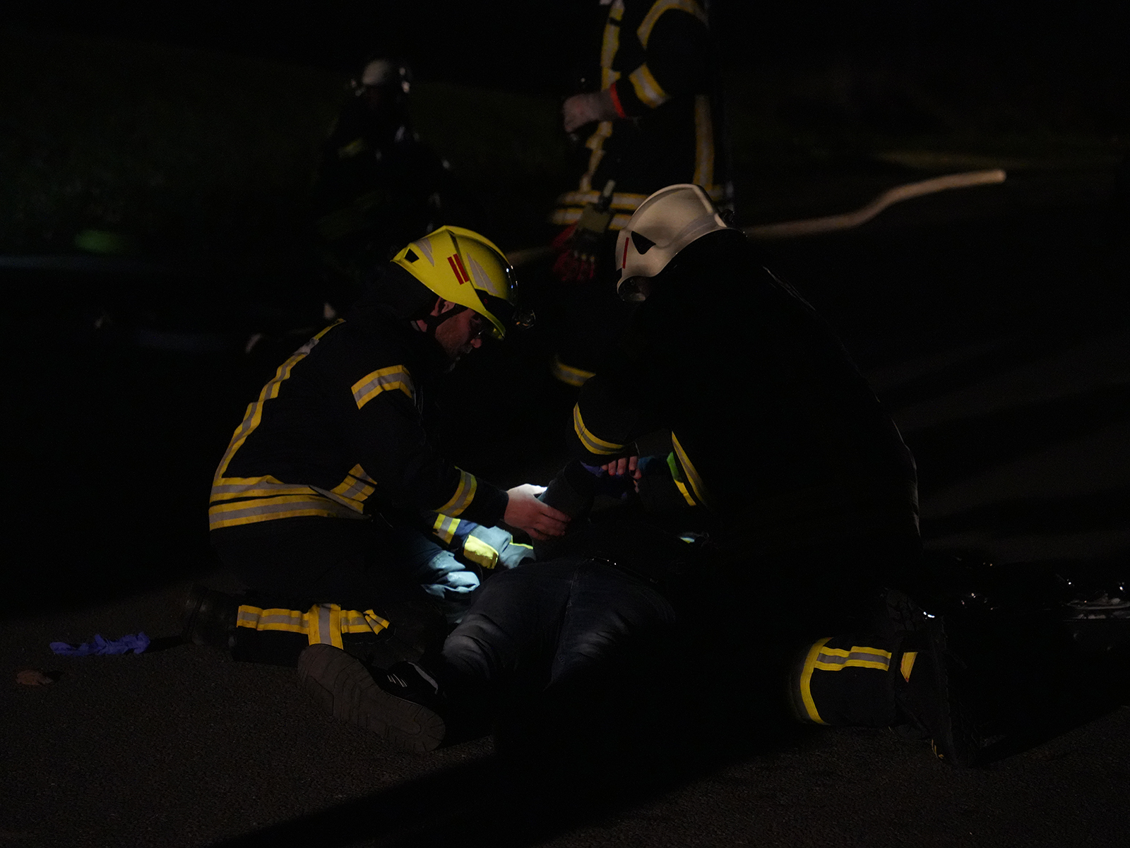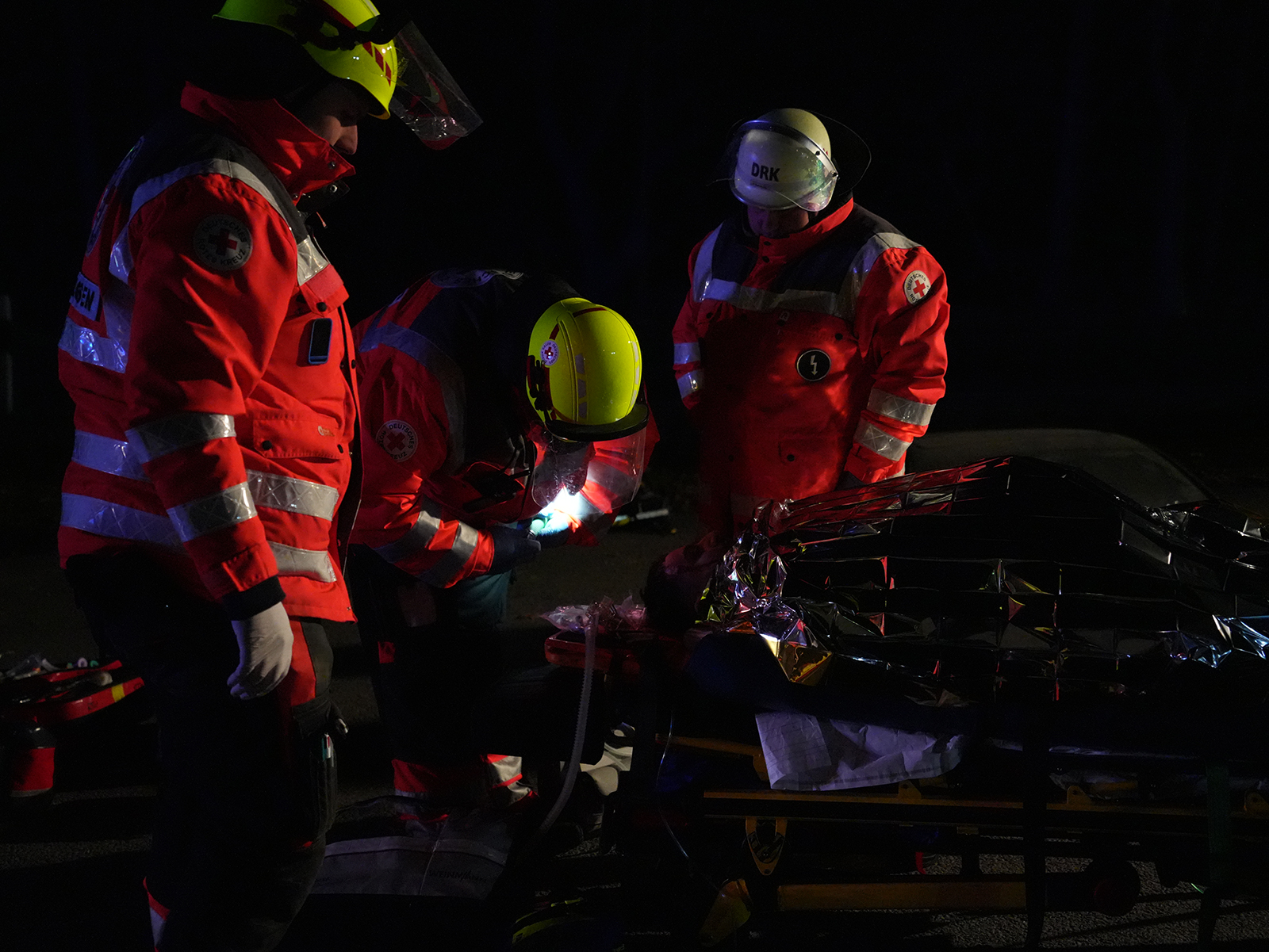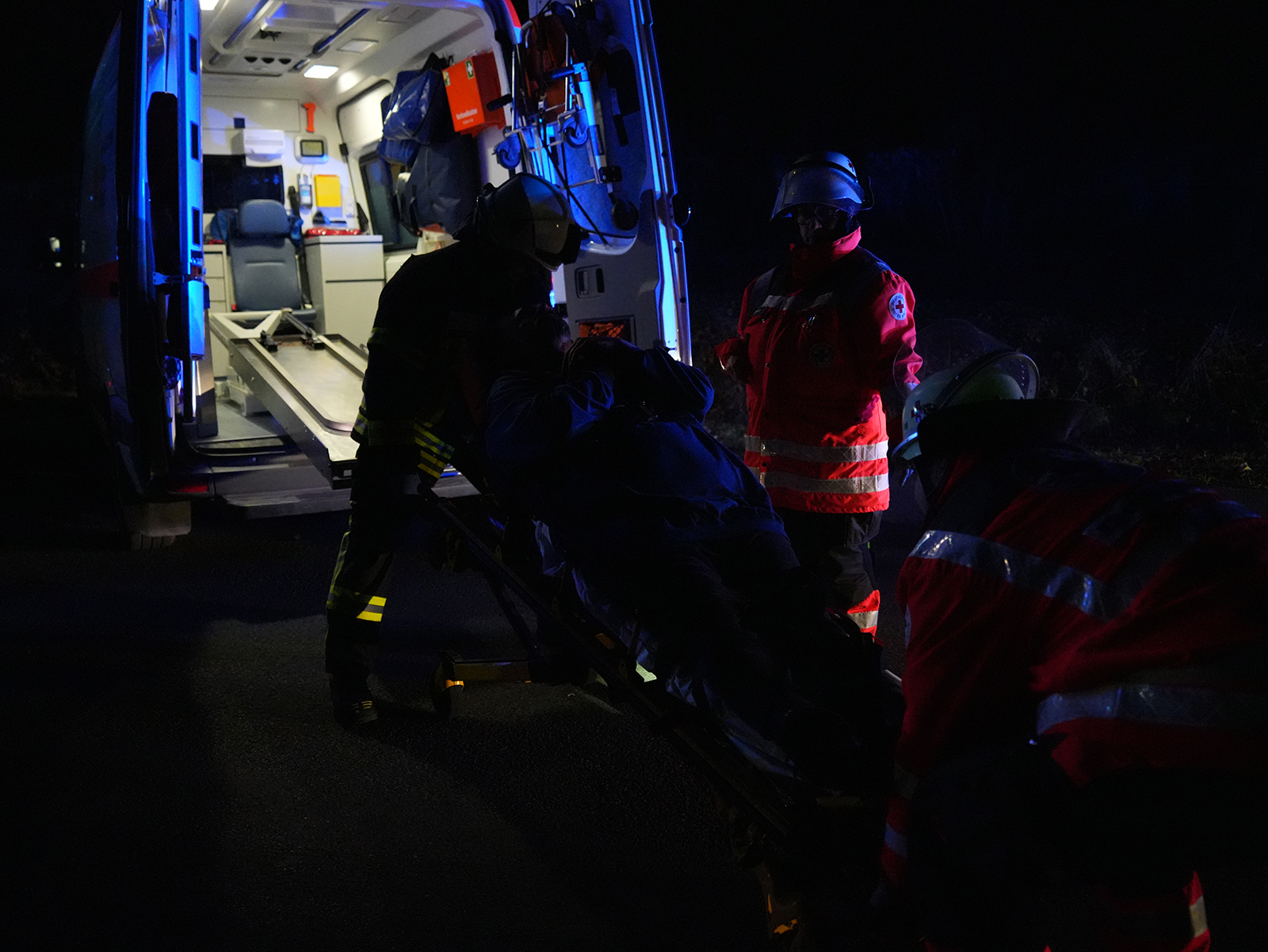 Während die Rettung der drei Verletzten lief, machte sich ein Trupp der Feuerwehr auf die Suche nach dem Fahrer des zweiten Fahrzeugs. Mithilfe einer Drohne mit Wärmebildkamera wurde das umliegende Gelände abgesucht. So konnte die vermisste Person zügig gefunden und medizinisch versorgt werden.