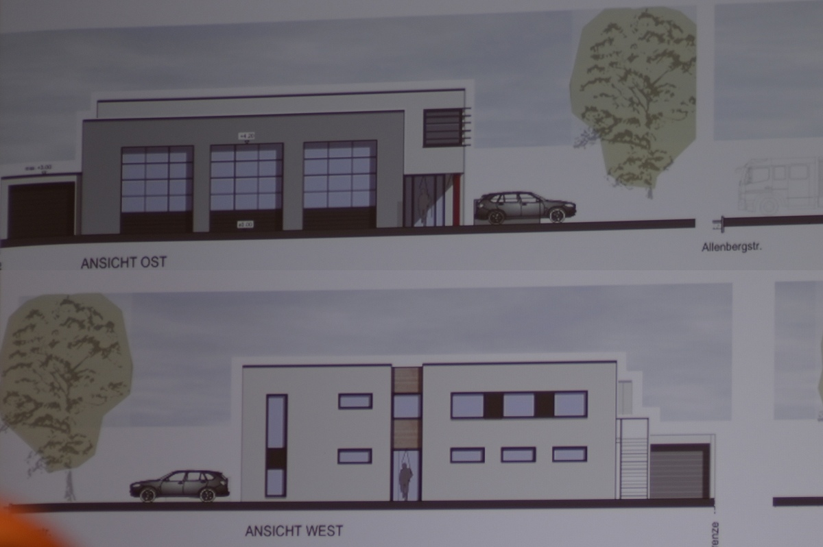 Ausführlich informierten die Verantwortlichen über den aktuellen Stand des Neubaus des Feuerwehrgerätehauses. Aufgrund der kalten Witterung sind die Bauarbeiten derzeit eingeschränkt. Während die Fundamente bereits gegossen wurden, konnte die Bodenplatte bislang noch nicht hergestellt werden. Erstmals wurden den Mitgliedern die Baupläne per Beamer vorgestellt. Vorgesehen sind vier Fahrzeughallen für drei Einsatzfahrzeuge sowie ein Feuerwehrboot. Das Gebäude wird nach modernen Standards errichtet und erhält einen Aufzug. Damit entsteht das erste Feuerwehrgerätehaus im Stadtgebiet Höxter mit einem eigenen Aufzug. Das bisherige Gerätehaus sowie das rund 120 Jahre alte ehemalige Schulgebäude wurden bereits abgerissen.