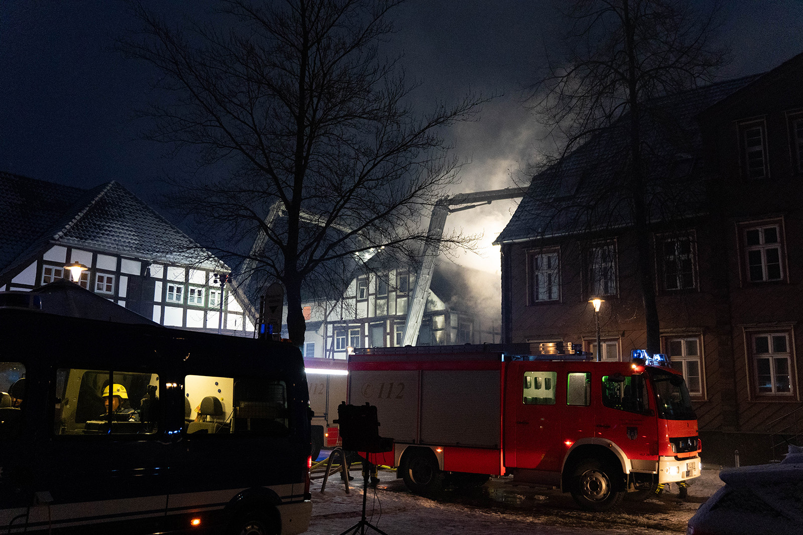 Aufgrund des drohenden Übergreifens wurde zudem die Feuerwehr Stadtoldendorf mit einem Löschzug und einer weiteren Drehleiter nachalarmiert. Das THW unterstützte die Einsatzkräfte unter anderem mit einer Drohne, die mit einer Wärmebildkamera ausgestattet war.