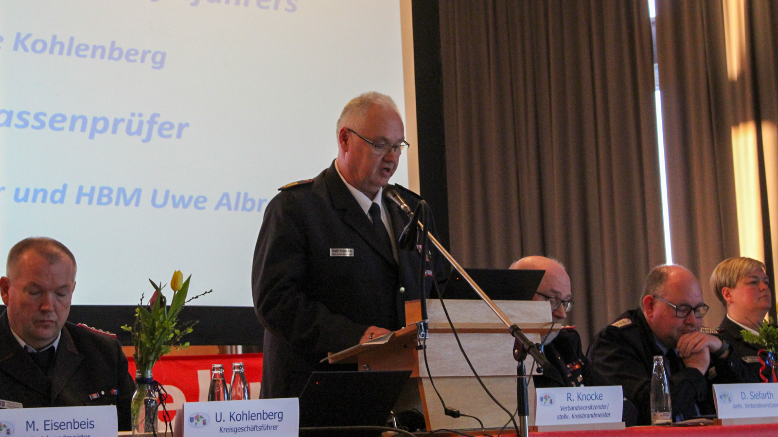 In seinem Jahresbericht stellte Knocke das Jahresmotto 2025 „Wichtiger denn je – deine Feuerwehr“ in den Mittelpunkt. Die Bedeutung der Feuerwehr habe in den vergangenen Jahren weiter zugenommen – unter anderem durch veränderte gesellschaftliche Rahmenbedingungen und steigende Anforderungen im Brand-, Katastrophen- und Zivilschutz.