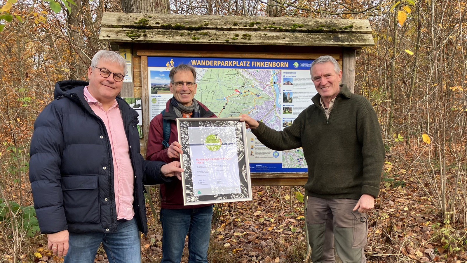 Hameln (red). Der Rundwanderweg Finkenborn–Riepen (HM1) im Klütwald ist als erster Rundwanderweg im Hamelner Stadtwald vom Deutschen Wanderverband zertifiziert worden. Der Weg trägt nun offiziell das Prädikat Qualitätsweg Wanderbares Deutschland in der Kategorie „traumtour“. Über diese Auszeichnung freuen sich Frank Lücke von Hameln Marketing und Tourismus, Hans-Georg Sievers vom Naturpark Weserbergland und Carsten Bölts vom Hamelner Forstamt.