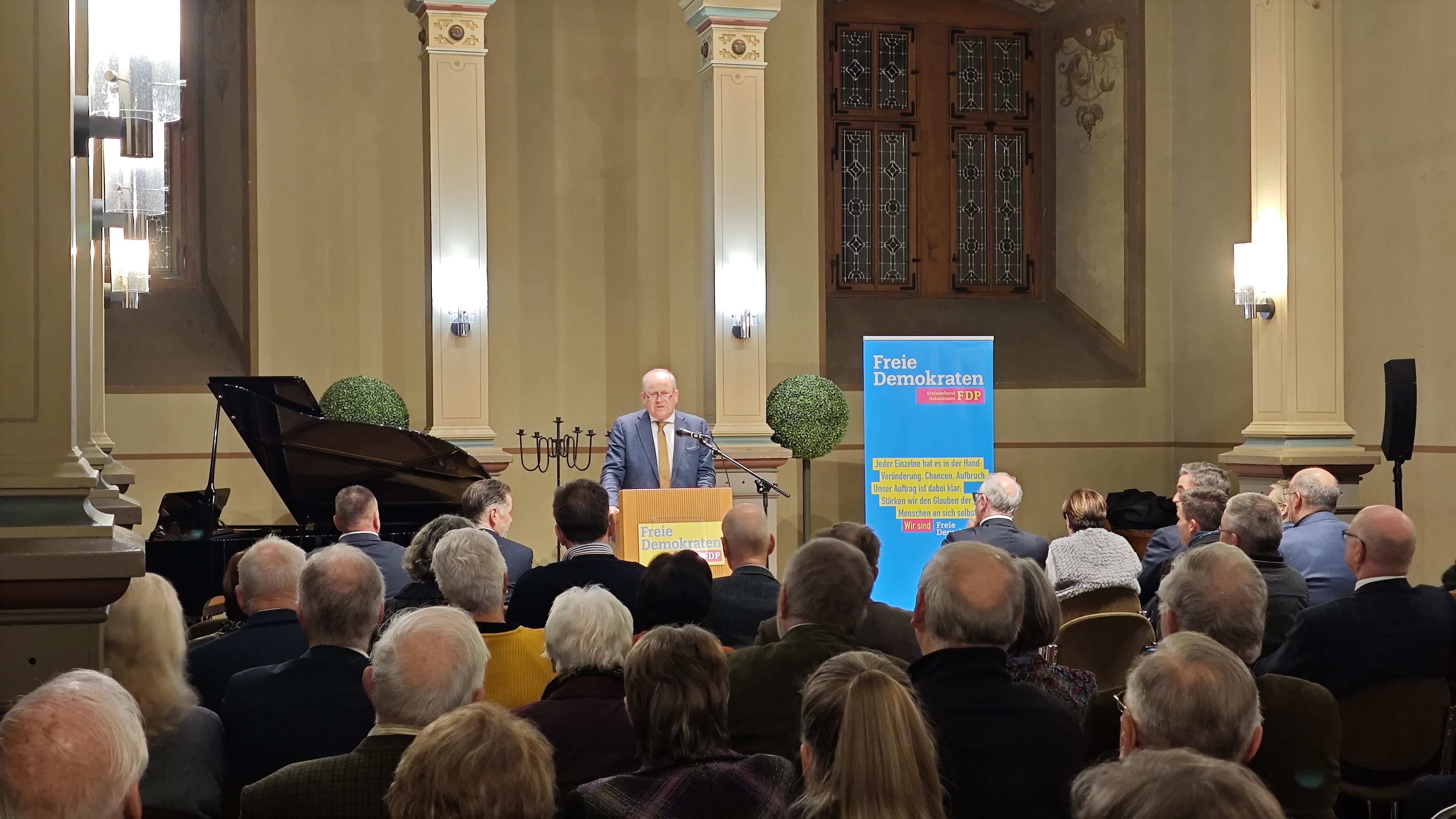 Bevern (zir). In der Schlosskapelle Bevern hat die FDP am 14. Januar ihren Neujahrsempfang veranstaltet. Begleitet von Klaviermusik kamen Vertreter aus Politik und Verwaltung zusammen. Im Mittelpunkt des Abends stand der Bundesvorsitzende der FDP, Christian Dürr, der als Stargast der Veranstaltung zentrale politische Themen ausführlich beleuchtete. Daneben ging es um Bildung, die angespannte Finanzlage der Kommunen sowie die zukünftige Ausrichtung der FDP.