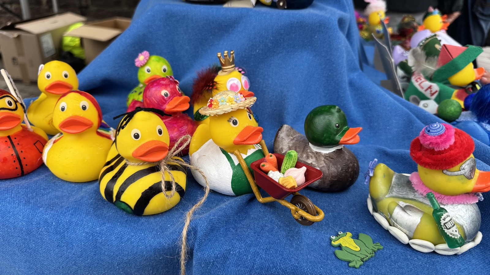 Das Highlight des Tages war wie immer das Hauptrennen. Knapp 4000 Enten plumpsten gleichzeitig von der Weserbrücke ins Wasser – ein gelbes Spektakel, überwacht per Drohne vom THW. Damit keine Ente verloren ging, sammelten fleißige Helfer die Tiere am Ziel mit Wäschekörben wieder ein.