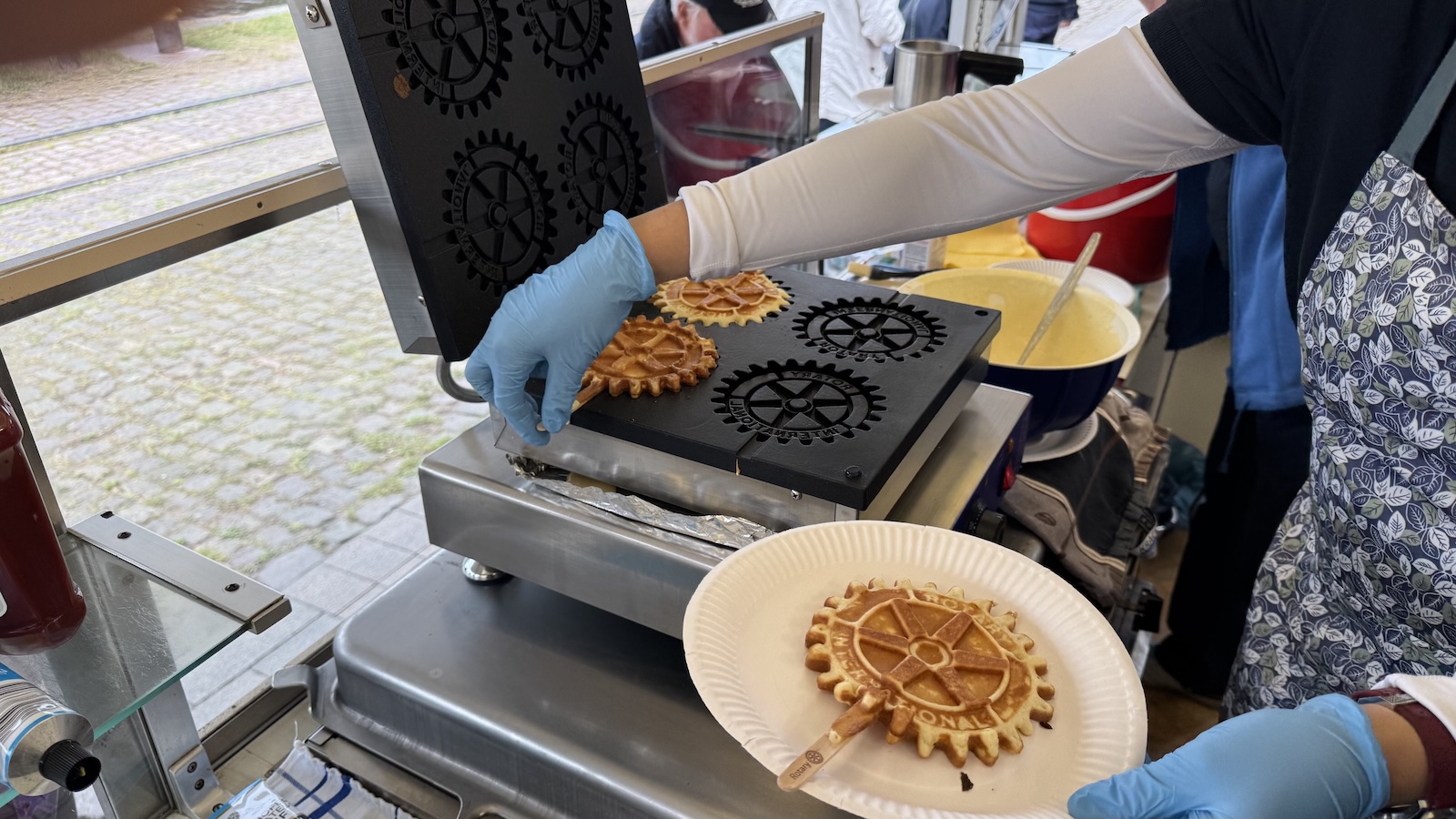 Neben dem Wettkampf kam auch das leibliche Wohl nicht zu kurz: Mit Kaffee, Brezeln, Bockwurst und Rotary-Waffeln waren die Zuschauer bestens versorgt.