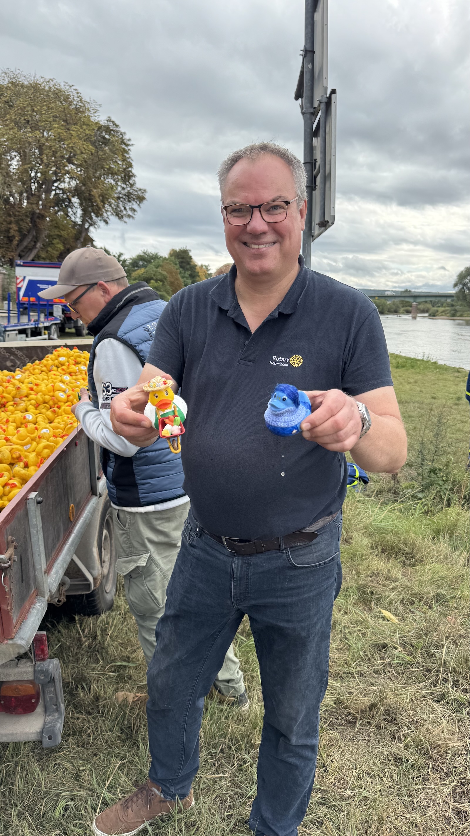 Doch so verspielt das Ganze auch aussieht – dahinter steckt, vor allem in diesem Jahr, auch eine Mission, die Rotary-Präsident Reinhard Nowak besonders am Herzen liegt: „Enten können von Geburt an schwimmen, Kinder müssen es erst lernen.“ Immer mehr Kinder können nicht sicher schwimmen, Unfälle häufen sich. Genau hier setzt der Erlös der Veranstaltung an. Die Spenden fließen nicht nur an die lokalen Tafeln und Tische in Holzminden und Höxter, das Frauenhaus und weiteren Vereinen, sondern vor allem an die DLRG-Ortsgruppe Holzminden und die Wasserfreunde Holzminden. Die Vorsitzende der Wasserfreunde,Anja Gaede, freute sich riesig: „Wir können damit Seepferdchenkurse finanzieren – vor allem Schwimmnudeln und Fortbildungen für unsere Übungsleiter.“