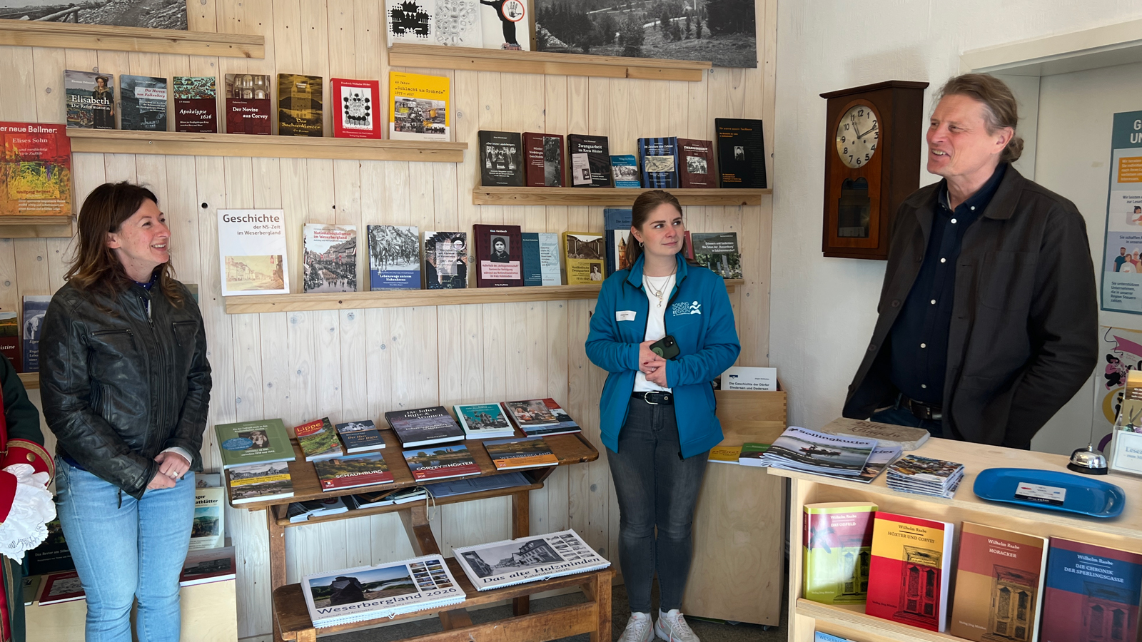 Nach kurzem Einparken im gemütlichen Laden empfing Jörg Mitzkat die Gruppe herzlich. Seit 1994 veröffentlicht sein Verlag regionale Bücher, von Werken über jüdische Geschichte bis zu Bildbänden über das Weserbergland. 2023 erhielt Mitzkat den Deutschen Verlagspreis für sein Engagement für die regionale Kultur. Die Besucher schlenderten durch die Regale, blätterten in den Büchern und lauschten den Geschichten über die Region – und spürten, wie wertvoll ein solcher lokaler Verlag für das kulturelle Leben ist.