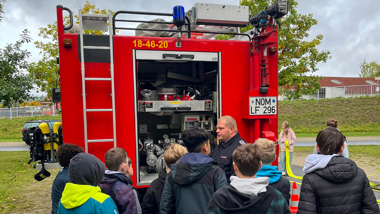 Die Jugendlichen erfuhren, wie ein Notruf richtig abgesetzt wird, und bekamen die verschiedenen Arten der Feuerwehr erklärt: Freiwillige, Berufs- und Pflichtfeuerwehr sowie Werk- und Betriebsfeuerwehr. Auch die zentralen Aufgaben Schützen, Retten, Bergen und Löschen wurden erläutert.