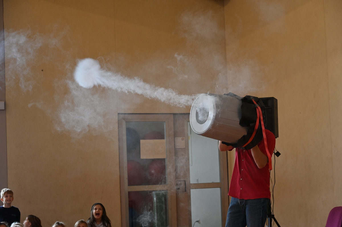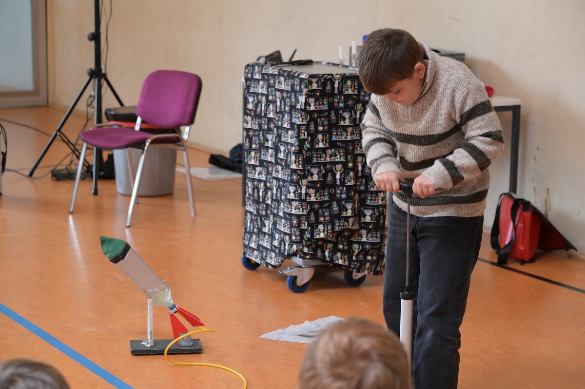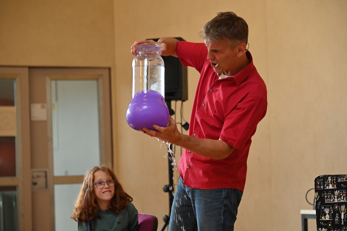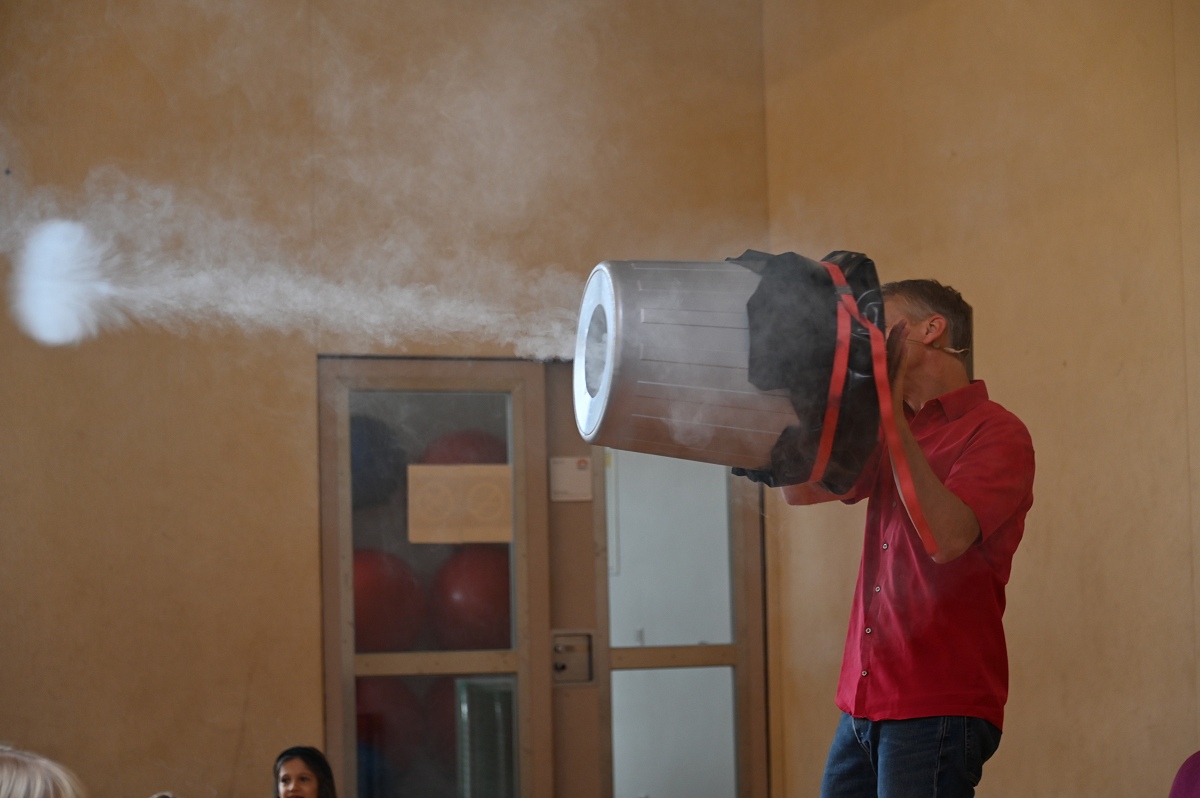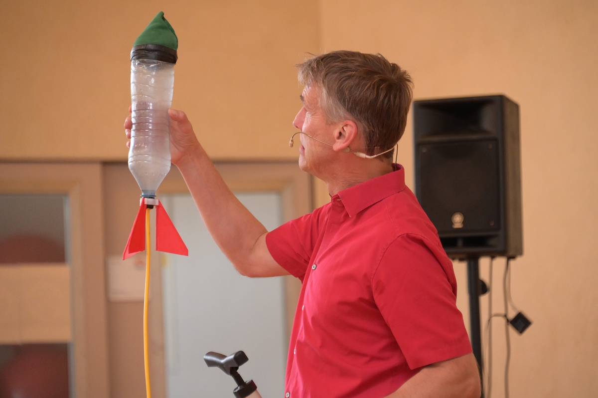 Doch nicht nur beeindruckende Experimente standen im Fokus: Die Kinder erfuhren spielerisch, wie Raketen fliegen, warum ein Feuer brennt oder wie man im Alltag Energie sparen kann. Besonders wichtig dabei – alle durften mitdenken, miträtseln und mitexperimentieren. Genau dieses aktive Erleben macht die Wissensshows der Physikanten zu nachhaltigen Lernerlebnissen.