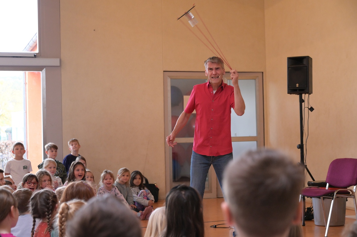 Begleitet wird die Show von passendem Lehrmaterial, das die Themen im Sachunterricht vertieft und den Forschergeist der Kinder weiter anregen soll. Die Begeisterung in der Turnhalle war von Anfang an riesig. Am Ende belohnten die jungen Zuschauer Dr. Ott mit frenetischem Applaus und lauten „Zugabe!“-Rufen.