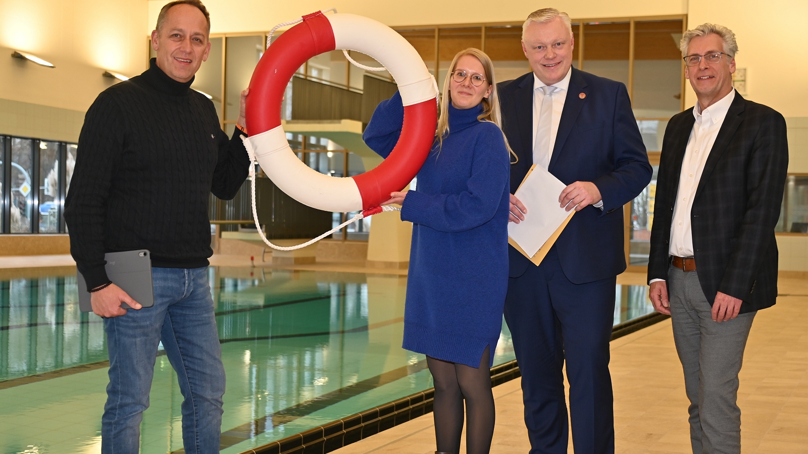Auch wenn die baulichen Arbeiten abgeschlossen sind, bedeute das jedoch nicht, dass das Hallenbad sofort wieder öffnen könne, so der Bürgermeister. Derzeit laufen umfangreiche Reinigungsarbeiten, zudem muss die technische Wiederinbetriebnahme sämtlicher Anlagen erfolgen. Hinzu kommt eine gesetzlich vorgeschriebene Überprüfung der Wasserqualität durch das Chemische- und Veterinäruntersuchungsamt (CVUA) bzw. Landesuntersuchungsamt (LUA), das für die staatliche Überwachung der Wasserqualität zuständig ist. Das Amt stellt im Auftrag der Bundesländer sicher, dass Trinkwasser, Badewasser und Umweltproben den gesetzlichen Anforderungen entsprechen. Am 6. Januar sollen dort Wasserproben entnommen und anschließend durch das CVUA untersucht werden. Aufgrund der Feiertage sei ein früherer Termin nicht möglich, erläutert der Bürgermeister. Mit Ergebnissen rechne man frühestens nach etwa zwei Wochen. Sollten die Proben unauffällig sein, könne das Bad voraussichtlich Ende Januar bzw. Anfang Februar wieder für den Badebetrieb freigegeben werden. „Damit haben wir ehrlich gesagt nicht gerechnet, umso größer ist die Freude, dass es nun doch so schnell geht“, so Hartmann.