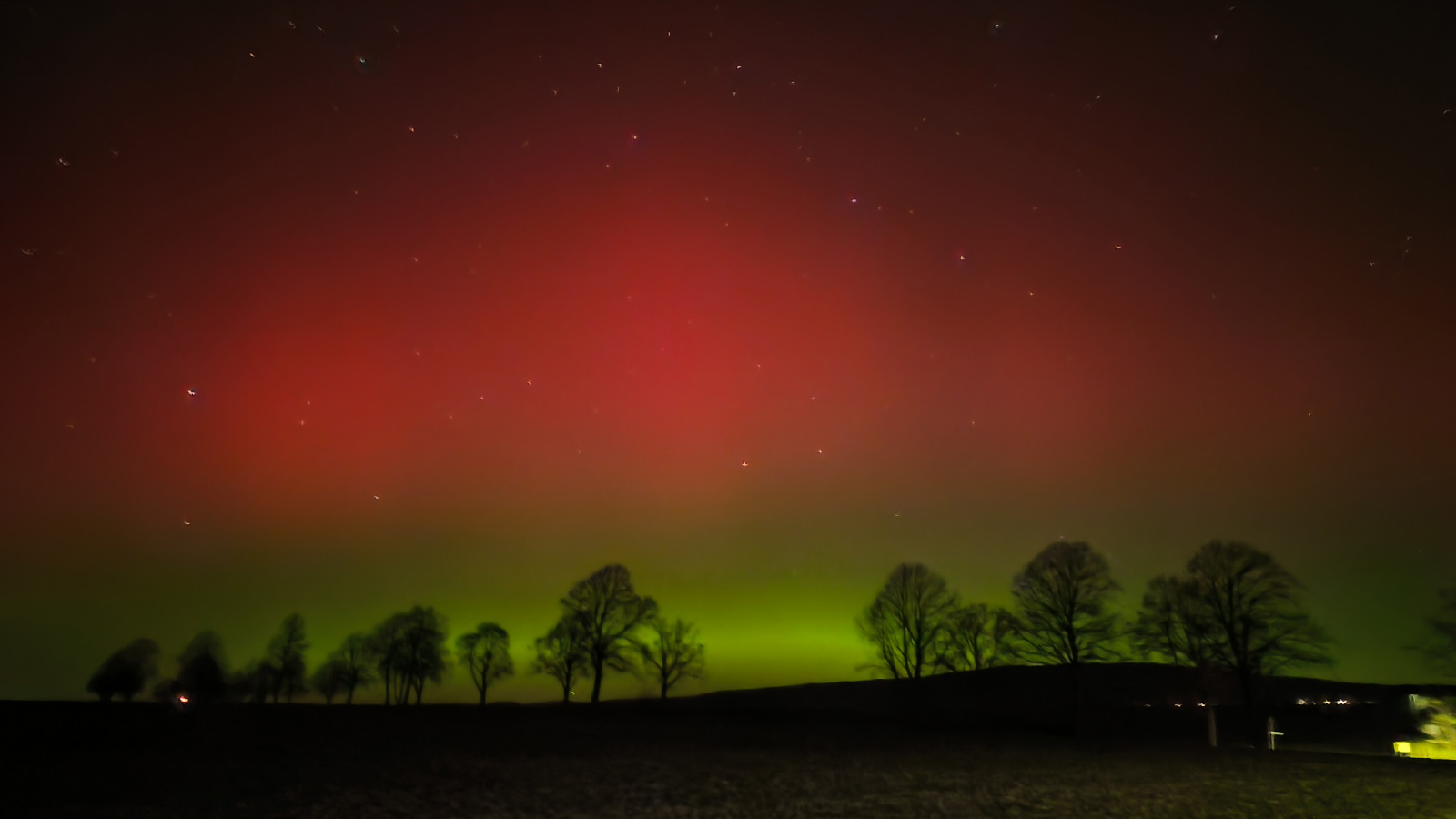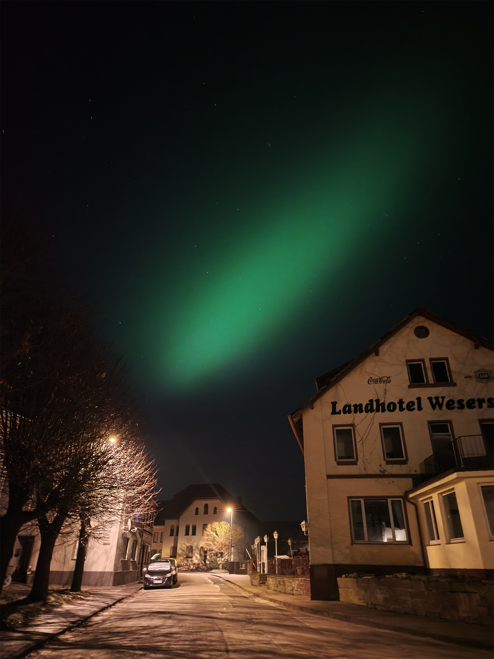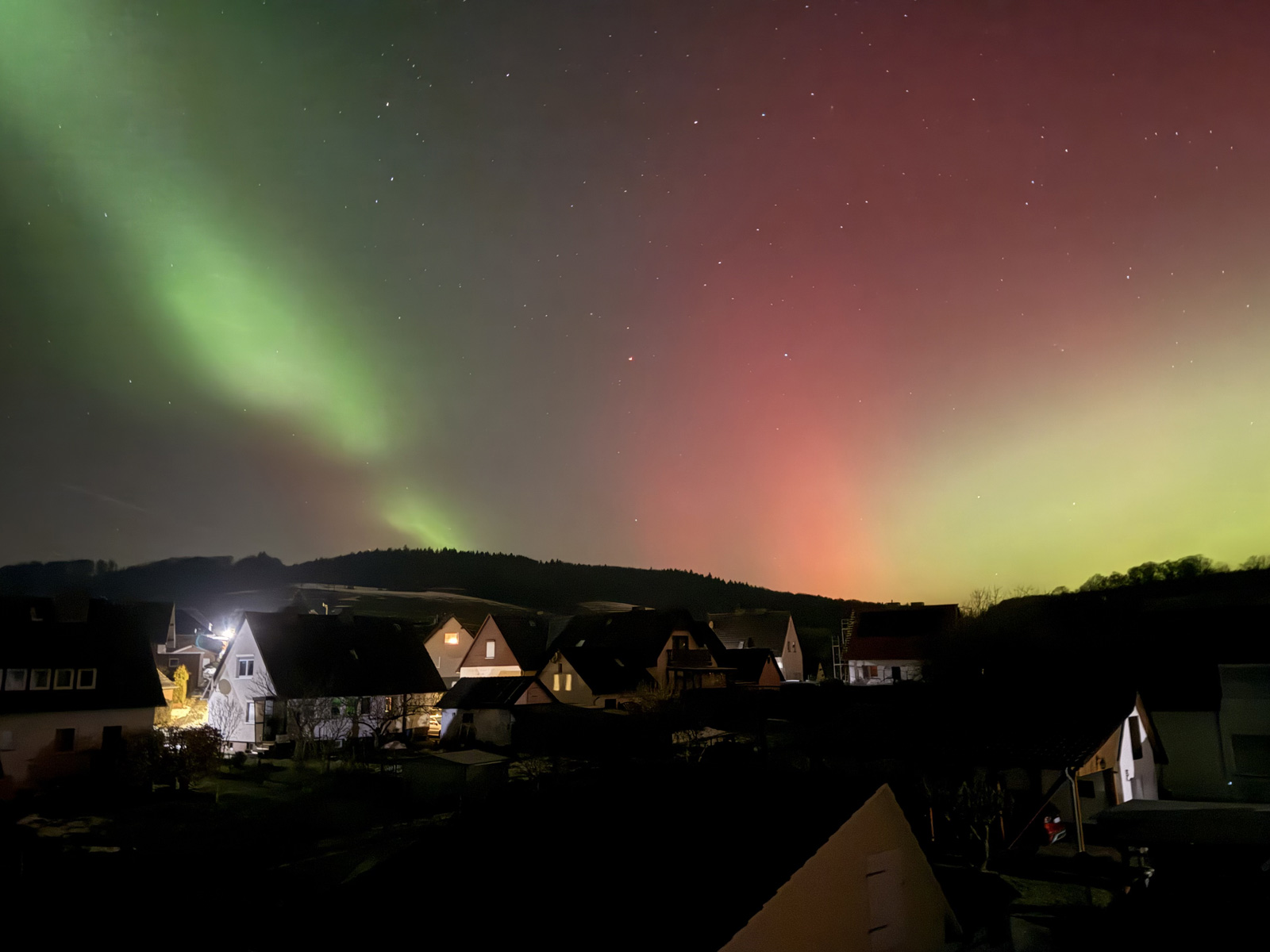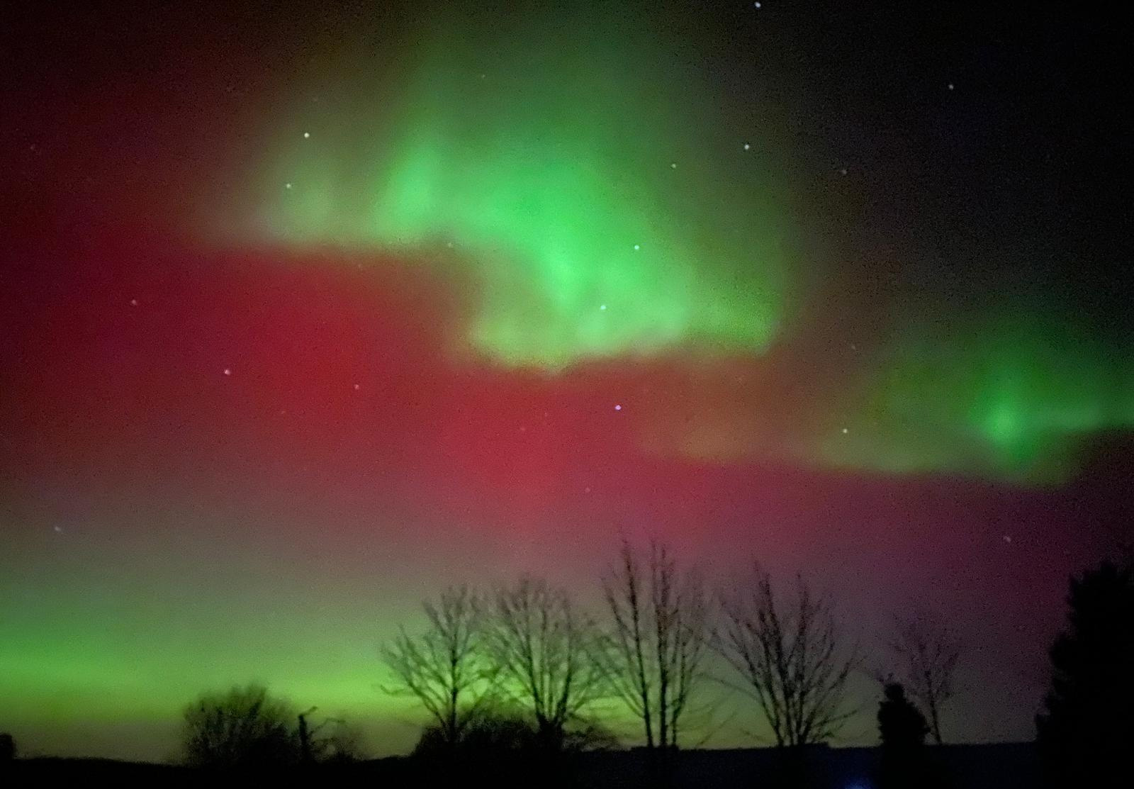 Normalerweise erscheinen Polarlichter in Mitteleuropa, wenn überhaupt, eher als blasses, weißliches Leuchten. Dass in dieser Nacht auch rötliche und grünliche Farbtöne deutlich erkennbar waren, gilt als klares Zeichen für eine besonders hohe Intensität. Sichtbare Farben mit bloßem Auge treten nur bei sehr starken geomagnetischen Ereignissen auf.