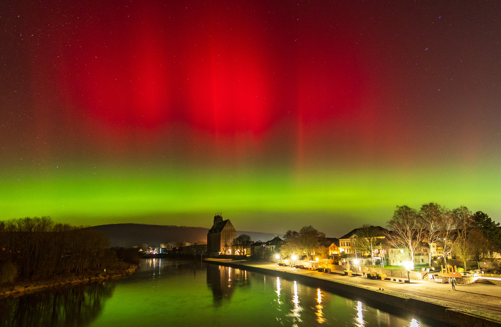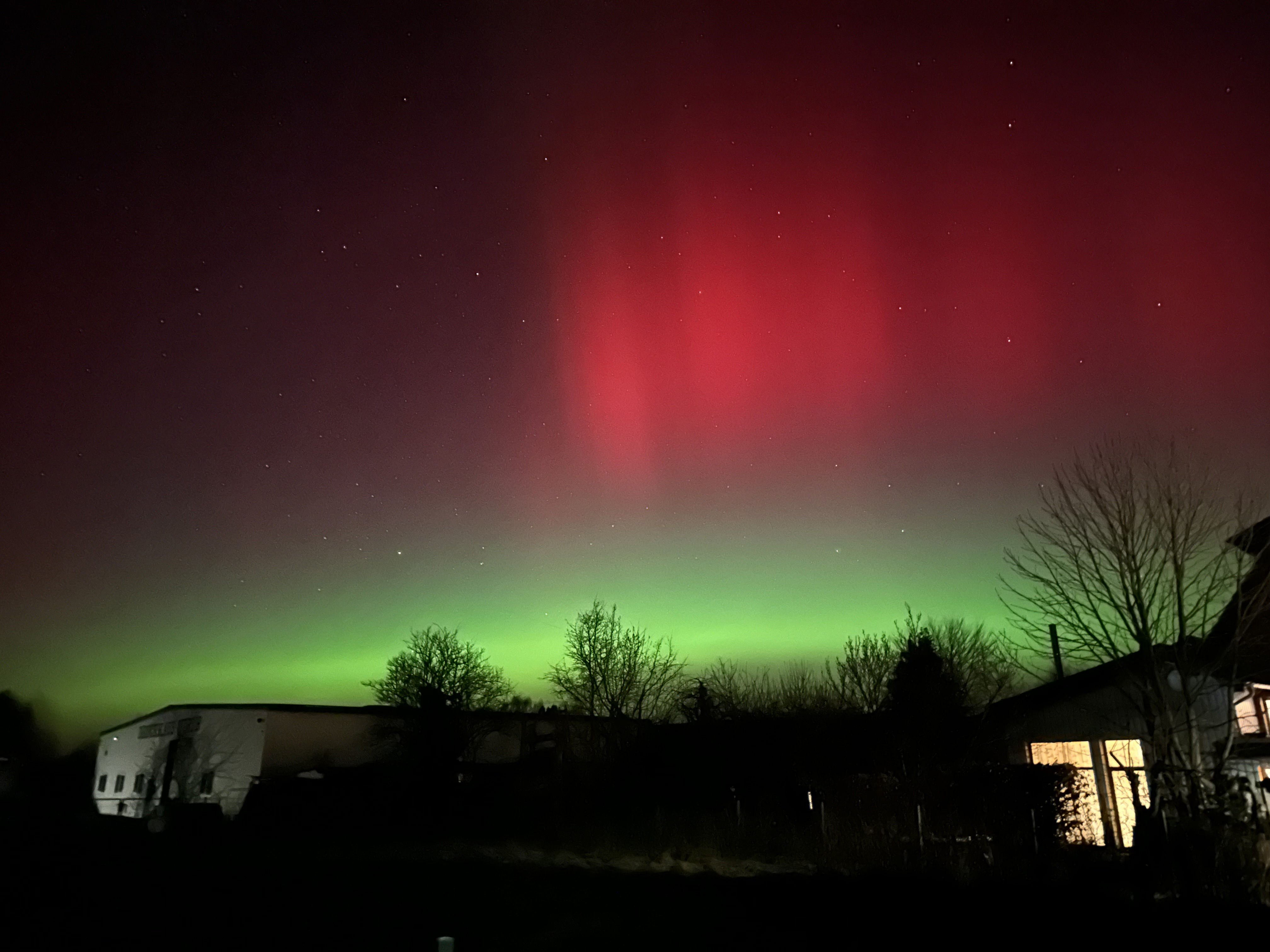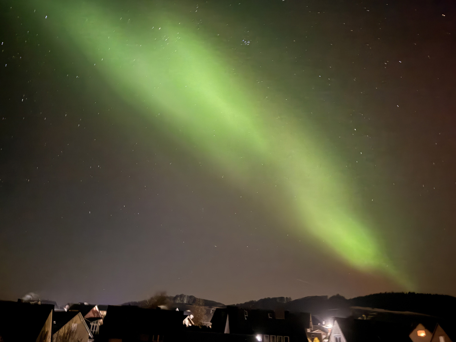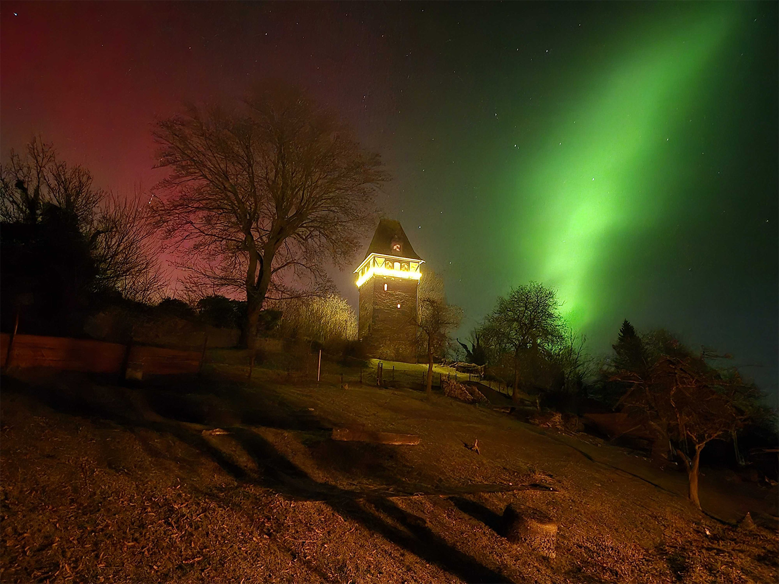 Normalerweise erscheinen Polarlichter in Mitteleuropa, wenn überhaupt, eher als blasses, weißliches Leuchten. Dass in dieser Nacht auch rötliche und grünliche Farbtöne deutlich erkennbar waren, gilt als klares Zeichen für eine besonders hohe Intensität. Sichtbare Farben mit bloßem Auge treten nur bei sehr starken geomagnetischen Ereignissen auf.