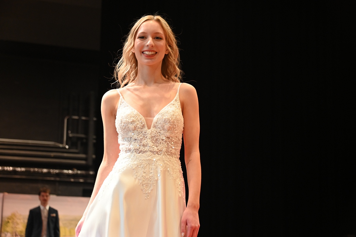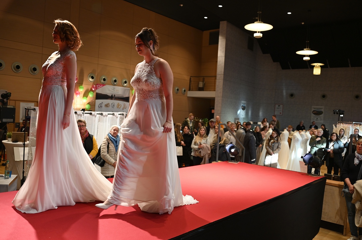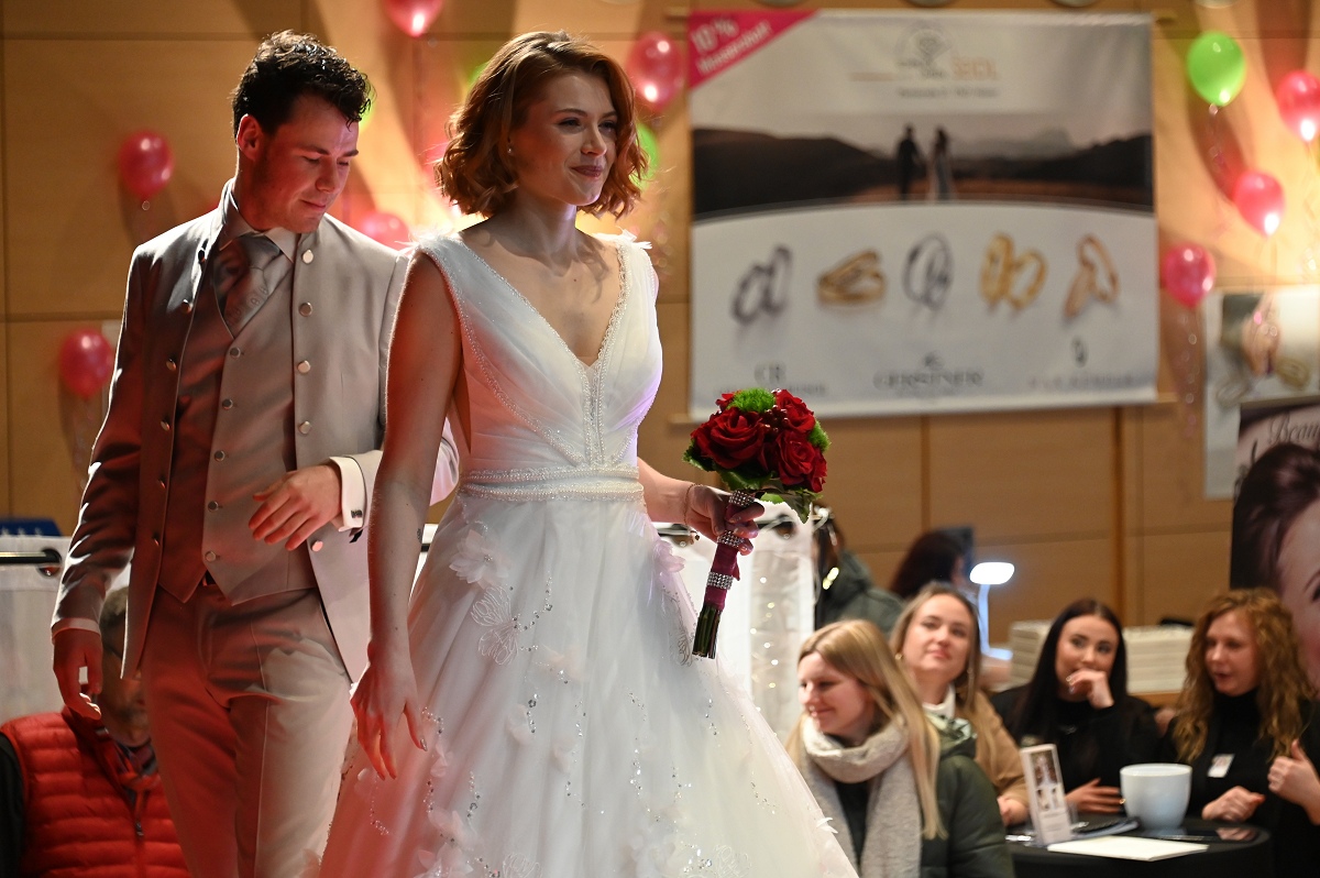 Höxter (TKu). Von der ersten Idee bis zum letzten Detail: Wer sich mitten in den Hochzeitsvorbereitungen befindet und Inspirationen suchte, insbesondere was die neuesten Trends betrifft, der war am Sonntag in der Residenz-Stadthalle in Höxter genau richtig. Bei der 30. Höxteraner Hochzeitsmesse, ausgerichtet von der Boutique Tinas Moden, drehte sich wieder einmal alles um den wohl schönsten Tag im Leben eines Paares. Die Messe bot eine gelungene Mischung aus Information, Inspiration und persönlicher Beratung. Drei Modenschauen, bei denen die aktuellen Hochzeitskollektionen 2026 vorgestellt wurden, waren die Höhepunkte der Messe, die etwa 500 Besucherinnen und Besucher angezogen hat. Zeitlose und wandelbare Designs seien aktuell sehr gefragt. Bettina Hörnlein von Tinas Moden erläuterte, dass aktuell hauptsächlich abnehmbare Röcke und Schleppen im Trend lägen, um den Übergang von Trauung zu Feier flexibel zu gestalten. Ergänzt würden diese durch integrierte Taschen, Beinschlitze in weich fließenden Chiffonröcken, schlichte Satinröcke oder weit geschnittene Kleider für den „Prinzessinnenmoment“. Ein hoher Tragekomfort und der Wohlfühlfaktor spielten bei der Beratung stets eine zentrale Rolle. Auch bei der Mode für den Bräutigam zeigten sich neue Akzente. Moderne Farbtöne setzten frische Impulse, während klassische Modelle, wie in Blau, weiterhin gefragt blieben.