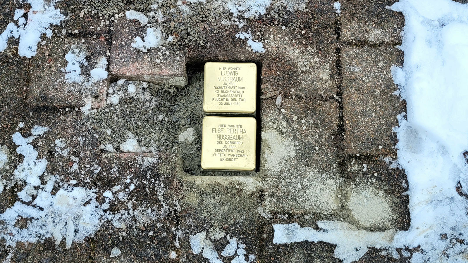 An der zweiten Station neben der Liebfrauenkirche erinnern zwei Stolpersteine an Ludwig Nussbaum, geboren 1888, der 1938 in „Schutzhaft“ kam, im Konzentrationslager Buchenwald Zwangsarbeit leisten musste und am 23. Juni 1939 starb, sowie an Else Bertha Nussbaum, geborene Kornberg, geboren 1886, deportiert 1942 und im Ghetto Warschau ermordet.