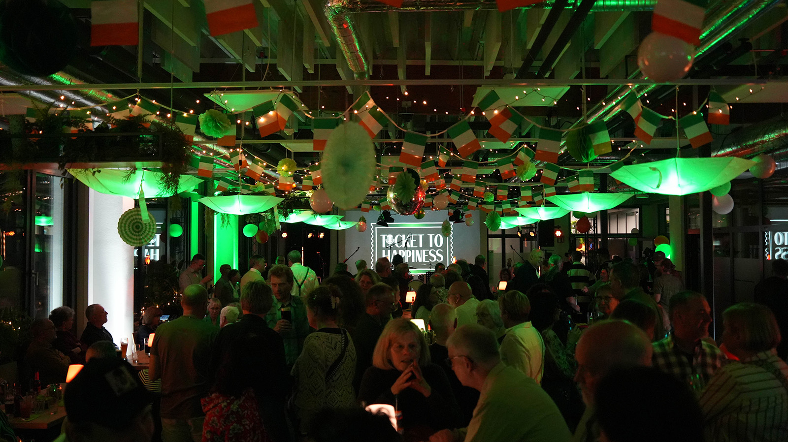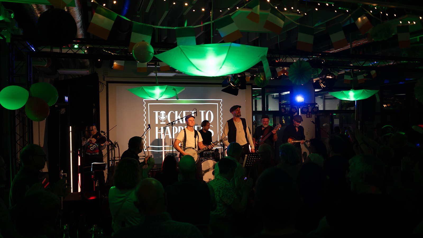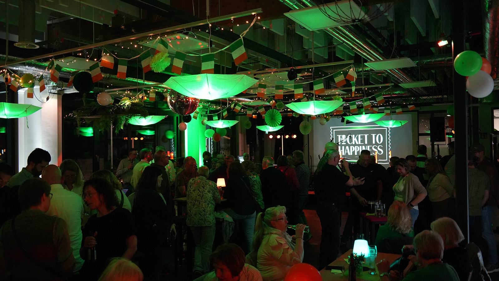 Im Mittelpunkt des Abends stand die Live-Band „Ticket to Happiness“, die mit einer Mischung aus irischen Klassikern und bekannten Pub-Songs für eine durchgehend lebhafte Stimmung sorgte. Die musikalische Darbietung entwickelte sich schnell zum verbindenden Element des Abends: Zahlreiche Gäste sangen mit, hakten sich unter und tanzten gemeinsam vor der Bühne.
