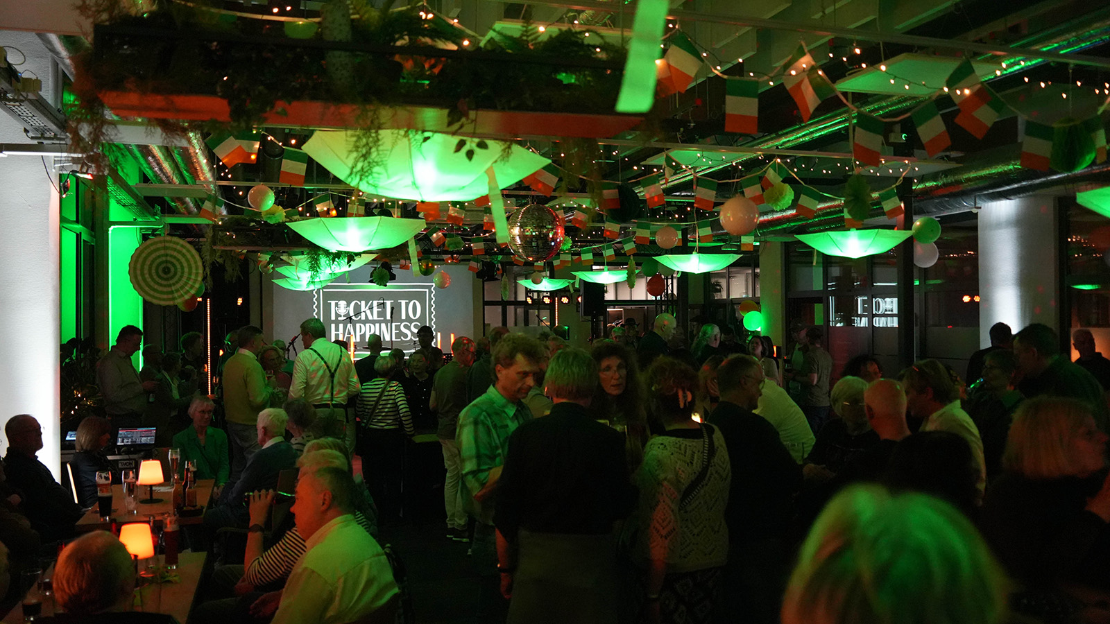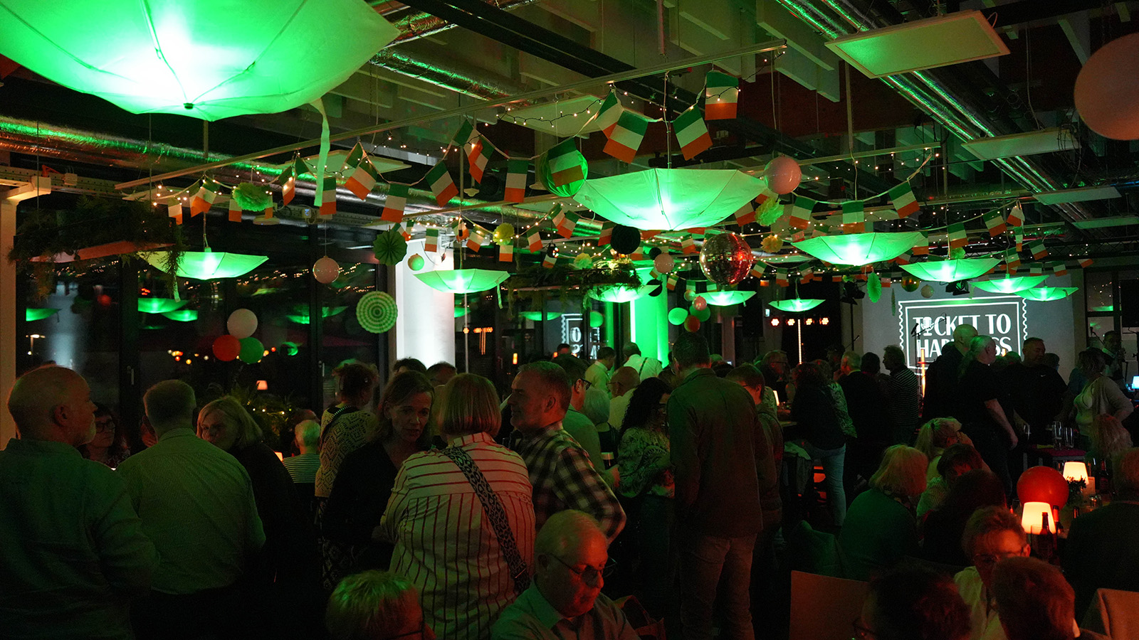 Bereits beim Betreten der Location wurde deutlich, dass der Abend konsequent im Stil der „grünen Insel“ gestaltet war. Passende Dekorationen, gedimmtes Licht und thematische Details sorgten für ein authentisches Ambiente. Viele Gäste griffen das Motto auch in ihrer Kleidung auf: Von Kleeblatt-Brillen bis hin zu auffälligen, grün glitzernden Accessoires prägte ein durchgehend stimmiges Gesamtbild das Geschehen.