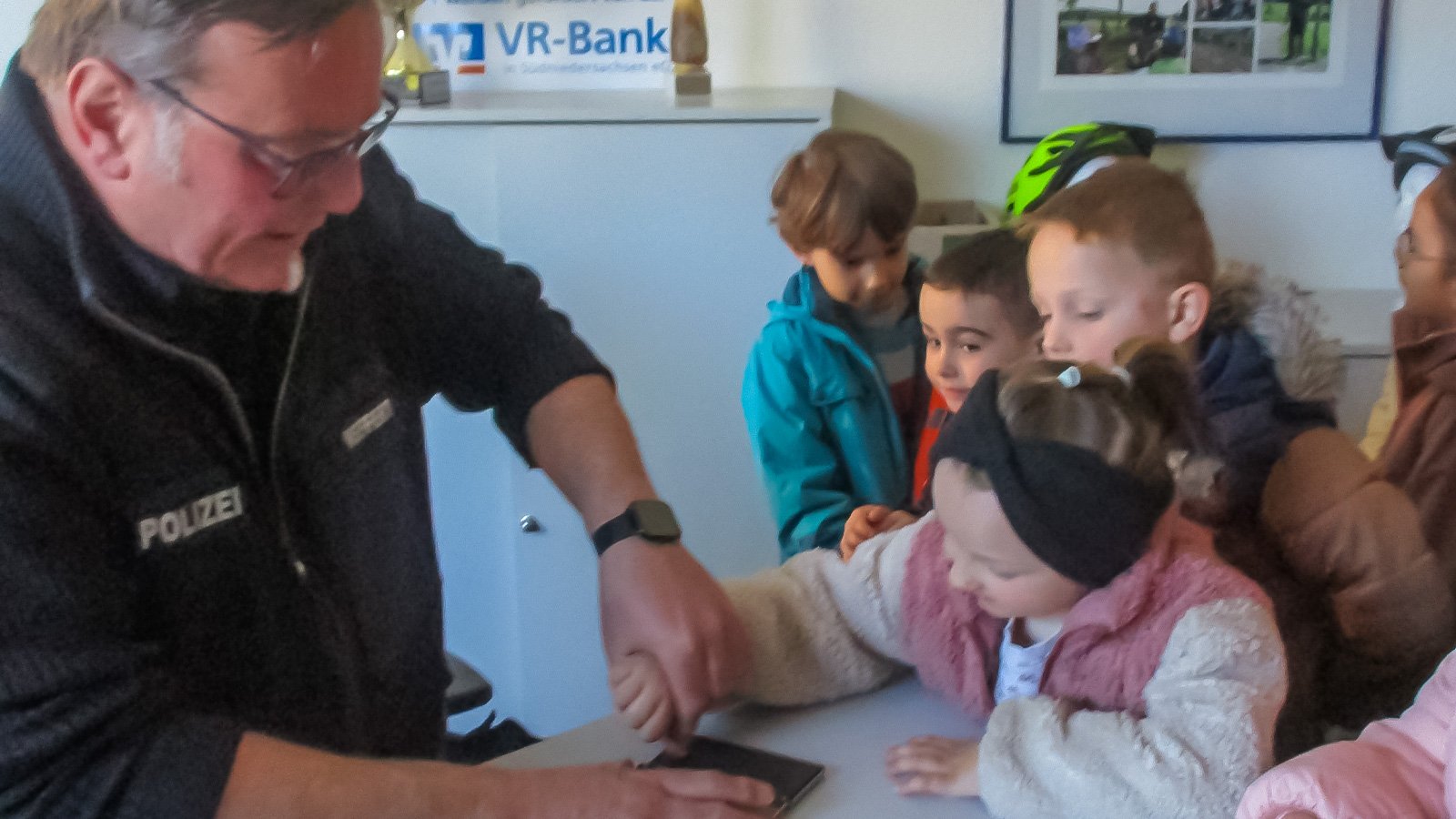 Zum Abschluss konnten die Kinder selbst aktiv werden. In der Kriminaltechnik wurden Fingerabdrücke genommen, die die Kinder anschließend begeistert betrachteten. Dabei erfuhren sie, welche Bedeutung Fingerabdrücke bei der Aufklärung von Straftaten haben.