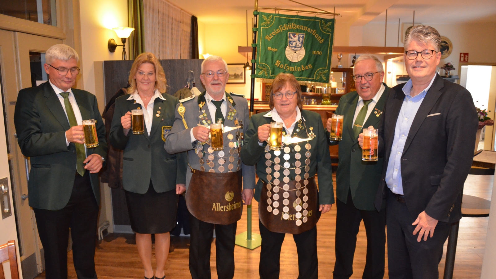 Holzminden (red). Wieder ist ein Kreiskönigsjahr zu Ende gegangen. Der Kreisschützenverband Holzminden hatte das noch amtierende Kreiskönigspaar Inge Oppermann vom Schützenklub Heinade und Hans Joachim Macke von der BSG Lenne zur feierlichen Verabschiedung in das Schützenzentrum Steinbreite eingeladen.