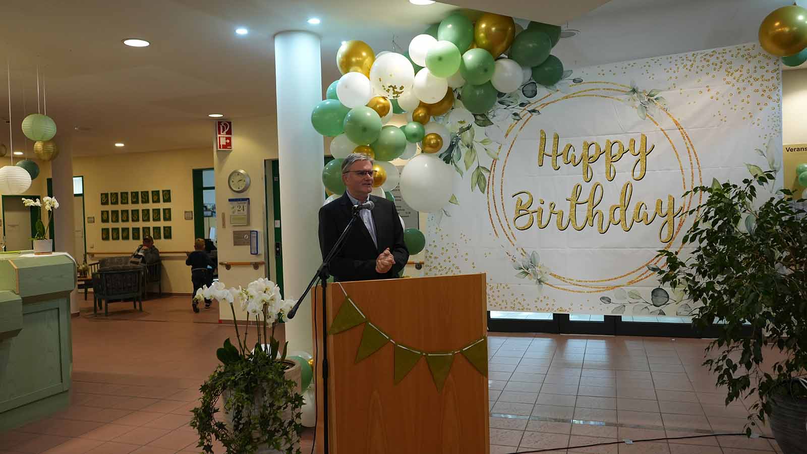 Landtagsabgeordneter Uwe Schünemann (CDU) gratulierte ebenfalls zum Jubiläum. „Auch ich sehe das Ganze als etwas, worauf man stolz sein kann, und empfinde es als eine Erfolgsgeschichte“, so Schünemann. Bewundernswert sei zudem, dass hier stets an Bewohnerinnen und Bewohner, Gäste sowie Familien gedacht werde. „Angehörige werden nie allein gelassen“, bemerkte der Landtagsabgeordnete.