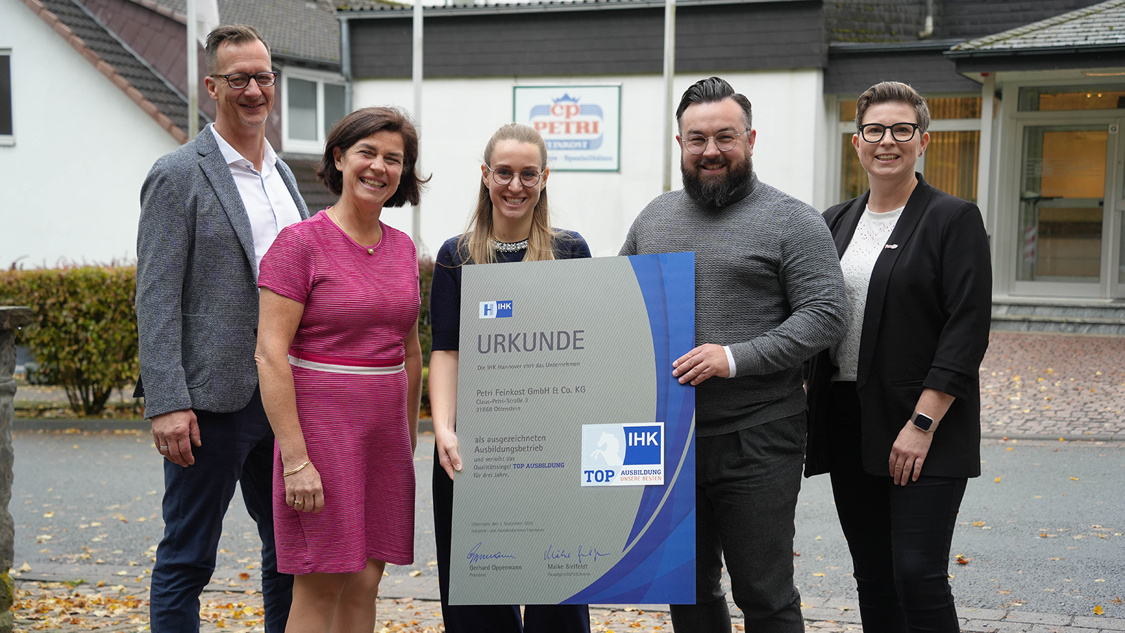 Rund 5500 Ausbildungsbetriebe sind bei der IHK in Niedersachsen registriert – doch nur etwa 130 Unternehmen tragen das begehrte Siegel. Im Landkreis Holzminden gehörte bislang allein die Otto Künnecke GmbH aus Holzminden zu diesem Kreis. Seit dem 16. Oktober darf sich nun auch die Petri Feinkost GmbH & Co. KG aus Glesse über die Auszeichnung für ihre herausragende Ausbildungsqualität freuen.