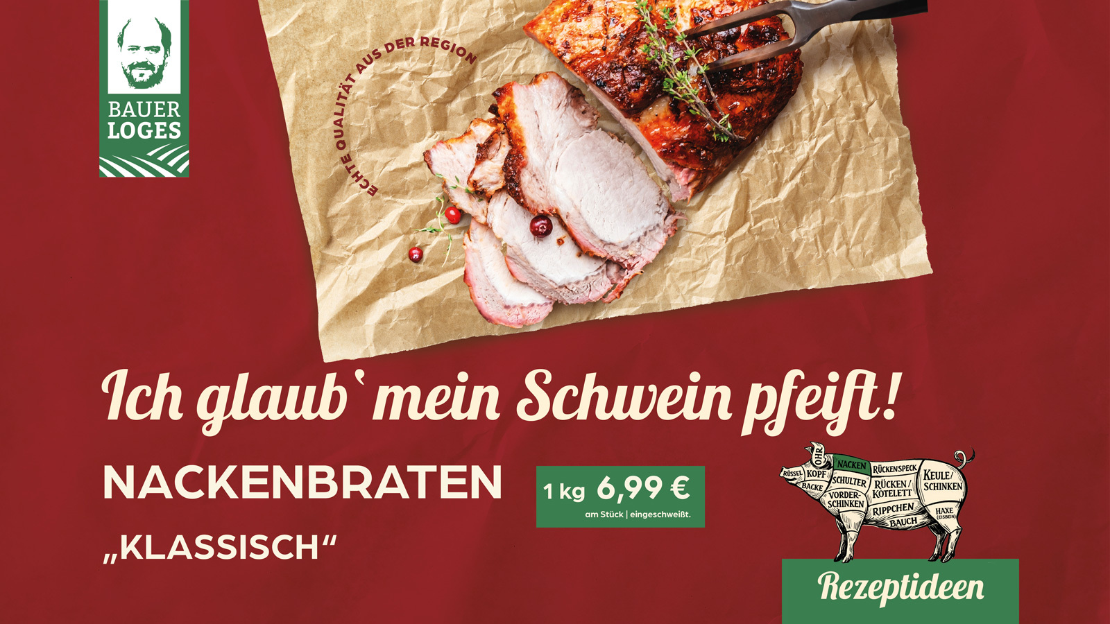 Das Konzept des Angebots geht bewusst über ein reines Preisangebot hinaus. Bauer Loges stellt nicht nur das passende Fleisch zu einem attraktiven Aktionspreis zur Verfügung, sondern gibt den Kundinnen und Kunden zugleich das nötige Wissen an die Hand, um das Gericht selbst zuzubereiten. Gerade bei Klassikern wie dem Nackenbraten soll so Sicherheit beim Kochen entstehen und die Lust auf die eigene Küche gefördert werden.