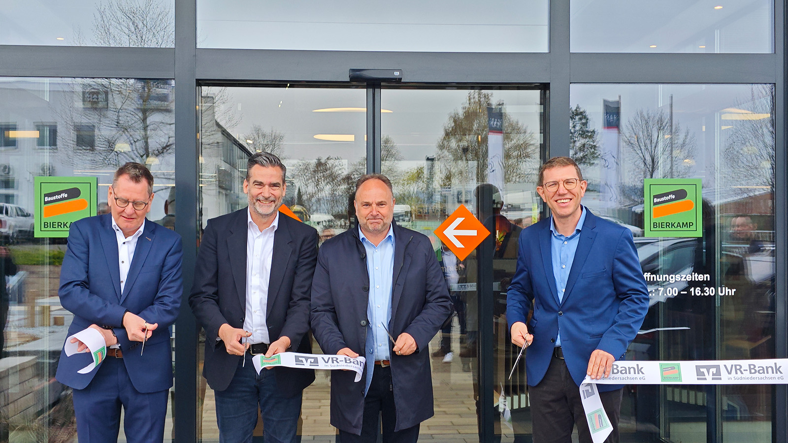 Holzminden (zir). Mit einer Feierstunde hat die VR-Bank in Südniedersachsen am 13.04.2026 ihren neuen Baustoff-Fachhandel „Bierkamp Baustoffe“ in Holzminden eröffnet. Das Unternehmen nutzt damit ein zuvor leerstehendes Gebäude, das nach der Schließung des früheren „teambau“ übernommen wurde, um dem Standort eine neue Perspektive zu geben und einem weiteren Leerstand entgegenzuwirken. Der Baustoffhandel wird bereits seit Jahren erfolgreich in Moringen betrieben und ist nun auch in Holzminden vertreten.