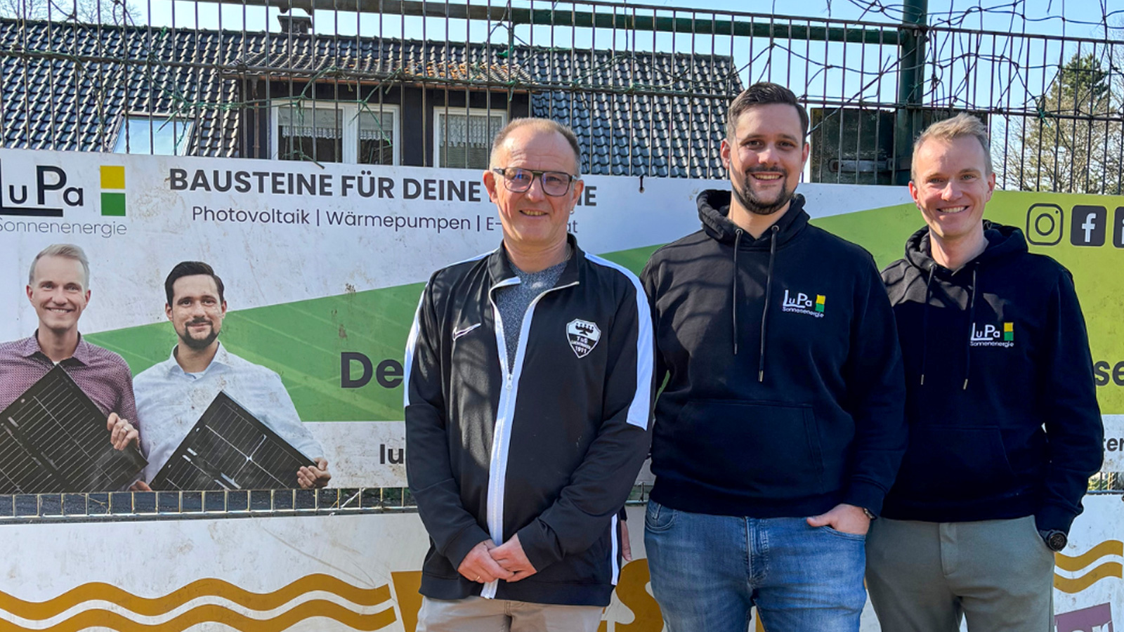 Lüchtringen (red). LuPa Sonnenenergie baut sein Engagement in der Region weiter aus und unterstützt den TuS Lüchtringen. Bereits seit dem vergangenen Jahr ist das Unternehmen mit einer Werbebande am Sportplatz vertreten. Vor Kurzem trafen sich die Geschäftsführer Patrick und Lucas mit dem 1. Vorsitzenden des TuS Lüchtringen, Andreas Pieres, um die Partnerschaft offiziell zu bekräftigen.